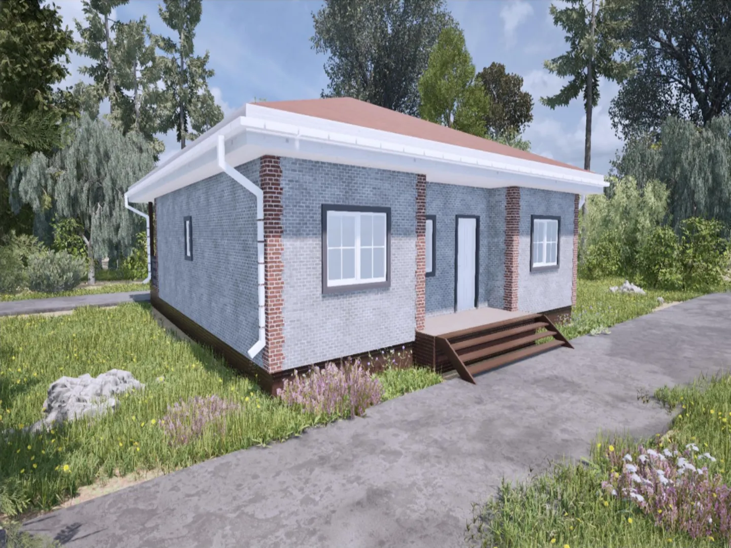 Строительство деревянных каркасных домовСтроительство домовСтроительство домов без балкона или лоджииСтроительство домов без верандыСтроительство домов без гаражаСтроительство домов без чердакаСтроительство домов в Классическом стилеСтроительство домов для круглогодичного проживанияСтроительство домов с верандойСтроительство домов с террасойСтроительство домов с четырехскатной (вальмовой) кровлейСтроительство одноэтажных домов