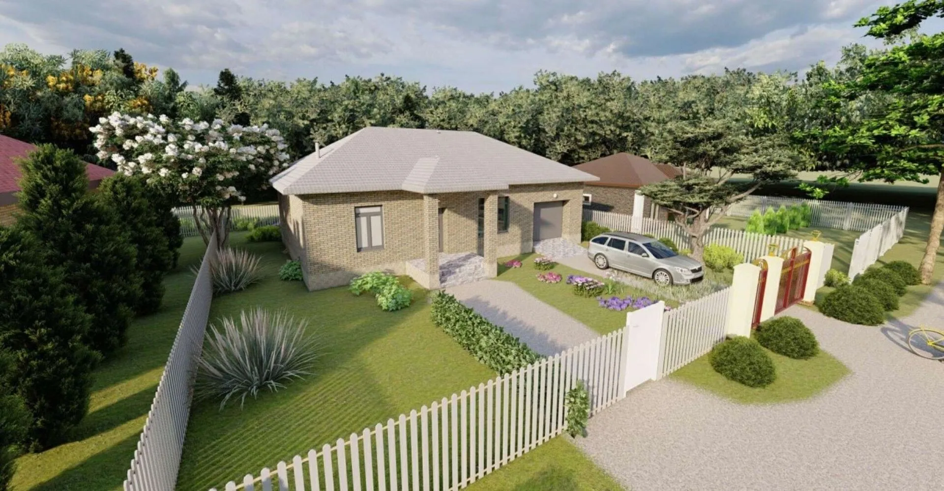 Этот уютный одноэтажный дом, выполненный в скандинавском стиле, дарит комфорт и свет в любое время года. В открытых планах обогащено натуральными материалами, создающими теплоту и гармонию. Отсутствие балконов и веранд не мешает ощущению открытости – просторная терраса соединяет внутренний уют с природой. Каждый уголок пропитан светом и уютом. И вдохновляющий. Дом оснащен пристроенным гаражом и крытой автостоянкой, что удобно для семьи и гостей. Наличие чердачного помещения предоставляет дополнительное пространство для хранения или создания личного уголка. Светлые оттенки интерьера и эргономика делают каждый миг особенным. Кровля в четырехскатном виде добавляет эстетики, а стены из легких керамзитобетонных блоков гарантируют теплоизоляцию и сохранность. И вдохновляющий.