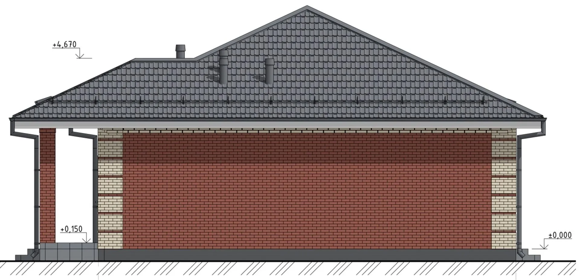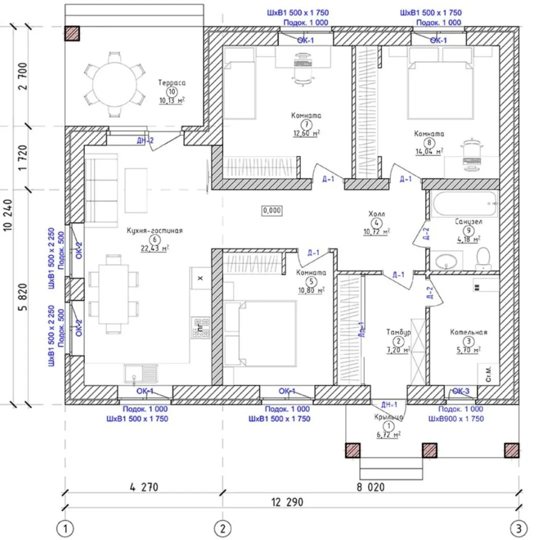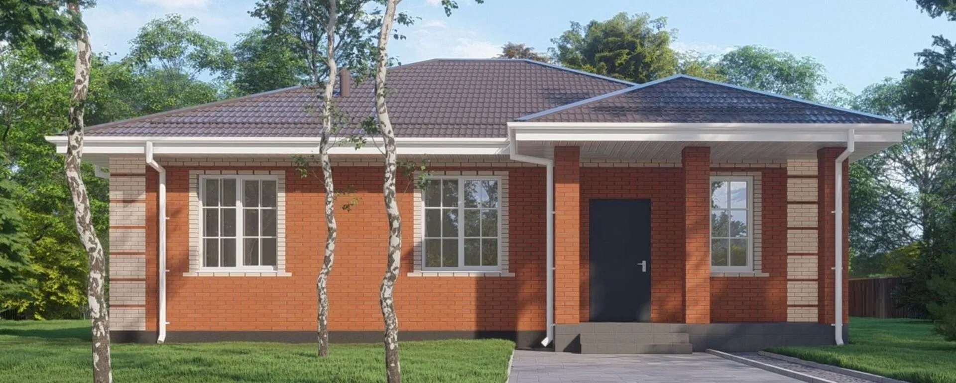 Одноэтажный дом с тремя спальнями и террасой. Проект 44-23КД