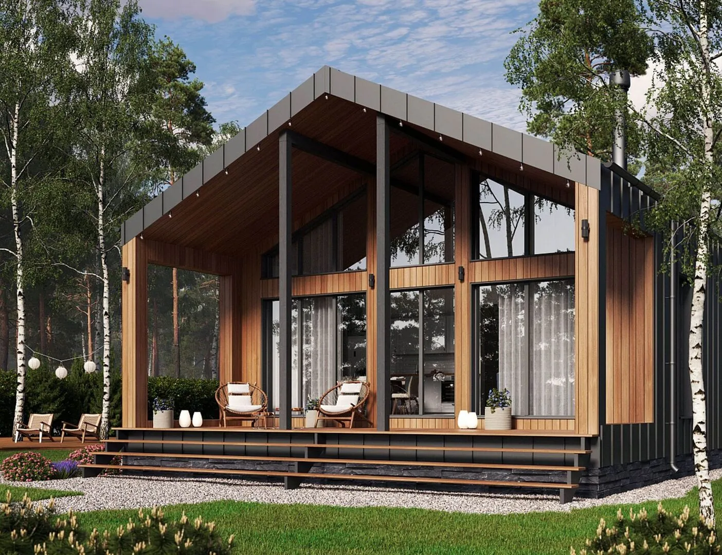 23НШ11.00 KOPORE – это очаровательный одноэтажный дом в стиле барнхаус, созданный для того, чтобы каждый день дарил уют и спокойствие. В деревянном каркасном корпусе ощущается тёплая традиционность, а простота формы и изысканные детали придают ему неповторимый шарм. Здесь каждый уголок пропитан атмосферой уюта, а большие окна наполняют комнаты естественным светом, превращая ваш дом в светлое гнездышко. Тёплые и гостеприимные, дома в этом корпусе изготавливаются с учётом круглогодичного проживания — от зимних снежных пиков до летних ласковых дней. Бетонный фундамент, утепленные стенки и качественная двухскатная кровля гарантируют комфорт в любое время года. Чердачное помещение, превращенное в гостиную, творческую студию или личный кабинет, открывает новые возможности для развития вашего пространства. А уютная терраса, окружённая зеленью, приглашает проводить вечера в компании близких и друзей. В каждой детали этого дома чувствуется любовь к качеству и внимательность к потребностям современных хозяев. Если вы ищете гармоничную комбинацию традиционной эстетики и современного комфорта — 23НШ11.00 KOPORE станет идеальным выбором для вашего нового дома.
