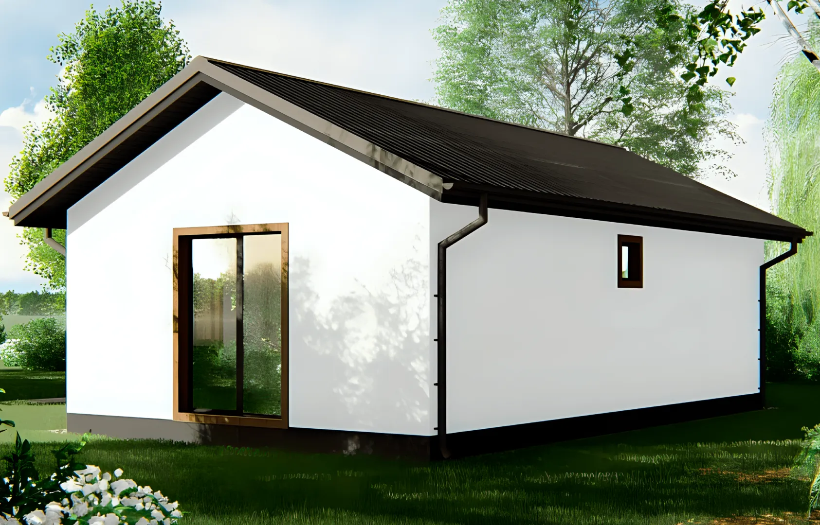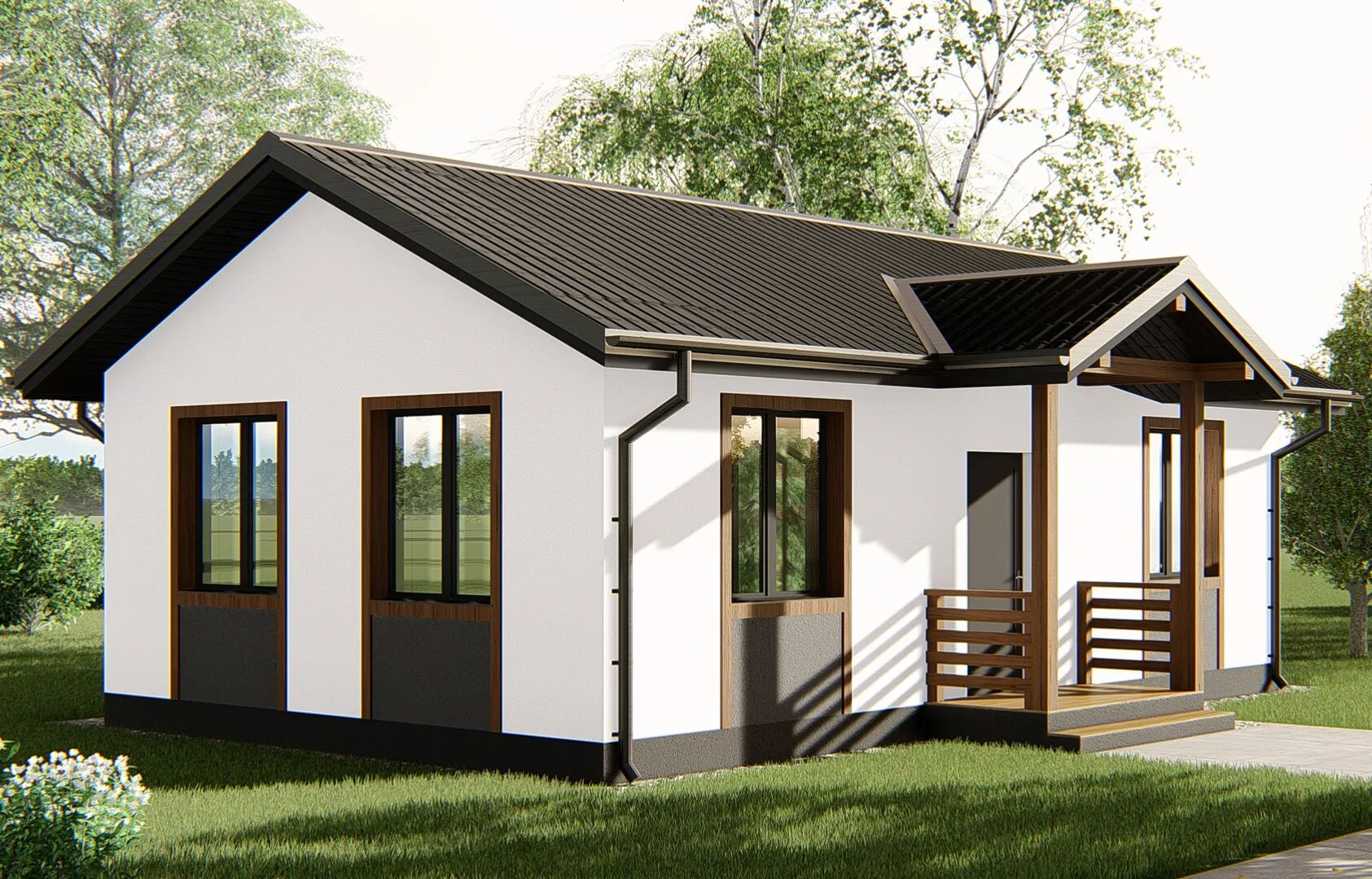 Ваша мечта о уютном, но современном доме может стать реальностью в этом изысканном одноэтажном проекте. Зимний холод и летний жар перестают быть вопросом – в доме предусмотрено круглогодичное проживание, а европейский стиль и лаконичные линии создают атмосферу благородства и комфорта. Внутри просторные комнаты открываются через светлые окна, а тепло, проходящее сквозь толстые керамзитобетонные блоки, сохраняет уют даже в самые прохладные дни. Несмотря на отсутствует балконы, веранды и дополнительные помещения типа гаража или чердача, проект выделяется своей функциональностью и эстетику простых решений: двойноскатная крыша придаёт дому характер и защищает от непредсказуемых погодных условий. Это не просто дом – это ваш личный оазис, где каждая деталь продумана для беспрецедентного комфорта и стиля жизни. Выбирая этот проект, вы инвестируете в архитектуру, где качество, тепло и элегантность объединены в одной гармоничной форме.