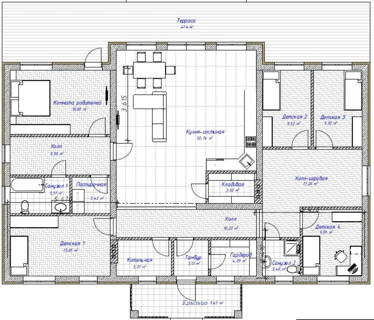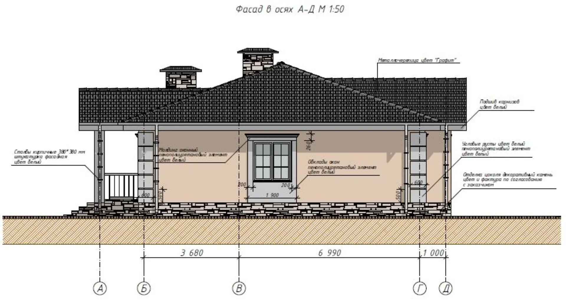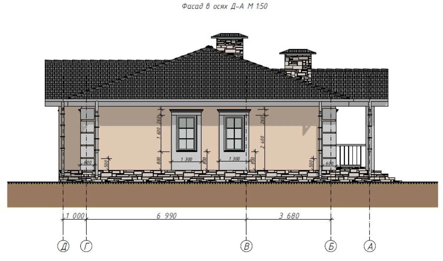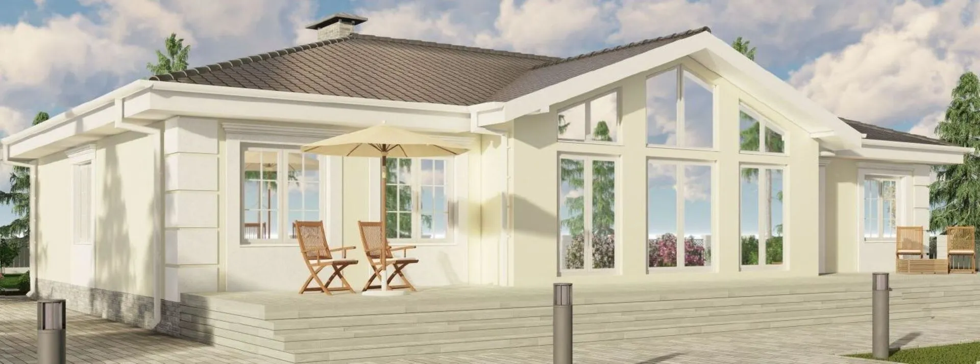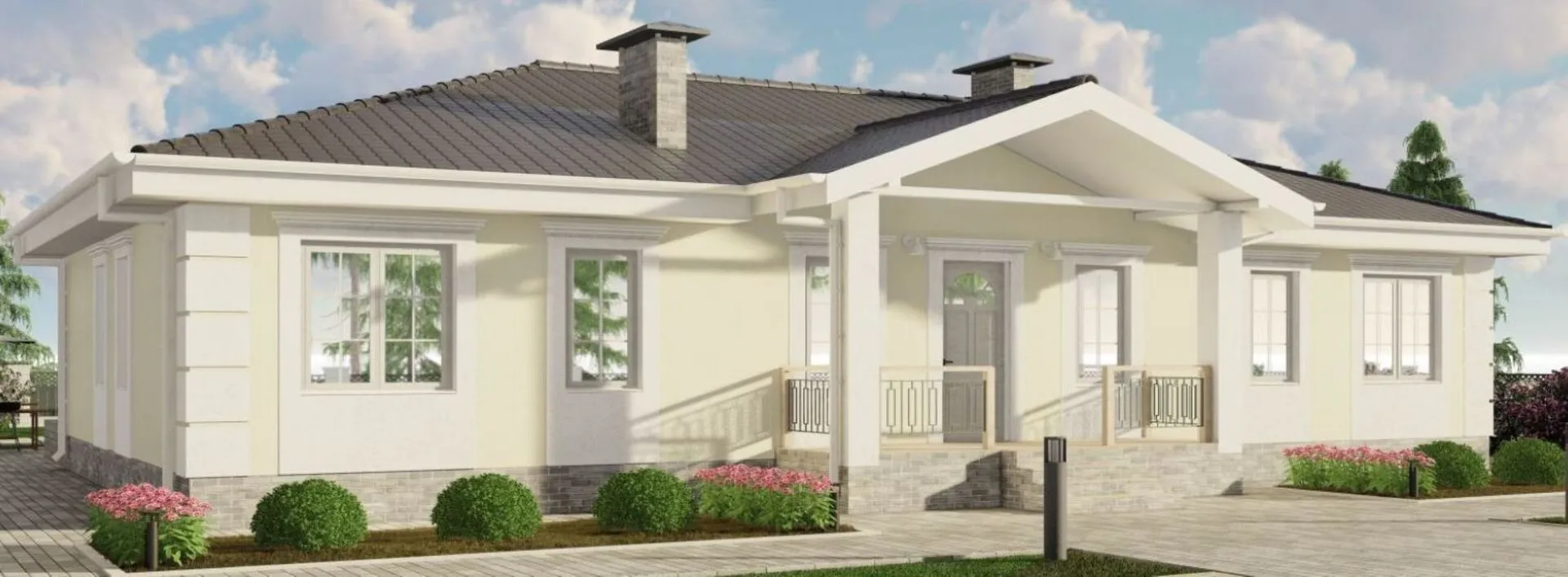 Одноэтажный жилой дом Зевс мини с крыльцом 93 кв.м