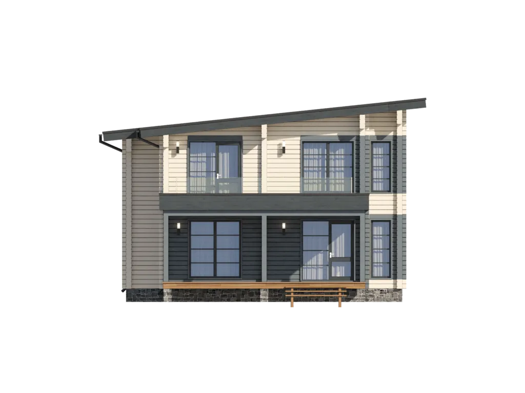 Небольшой дом с двухнадземных этажей в европейском стиле – идеальное место, где каждая деталь продумана для удобства и уюта. Окружающий его открытый простор и светлый дизайн позволяют проживать здесь круглый год наслаждаясь природой Алтая, не теряя чувство дома. Внутри просторные светлые комнаты, высокие потолки и большие окна создают атмосферу лёгкости и тепла, а на первом этаже – уютная гостиная с камином, а на втором – спальни и современные ванные комнаты. Великолепие дома проявляется в его внешнем облике: стены выполнены из клеённого бруса, придающего структуре приятный и естественный вид, а односкатная крыша добавляет элегантности и функциональности. К дому крепко стоит веранда, где можно отдохнуть, насладиться свежим воздухом и видом на живописные ландшафты. Отсутствие гаража, чердака и террасы – это возможность адаптировать пространство под собственные идеи: от сада и зимнего заповедника до зоны для развлечений. В этом доме сочетается современный комфорт, природное тепло и неповторимый колорит Алтайских просторов, приглашая стать его частью без ограничений от лишних сооружений.