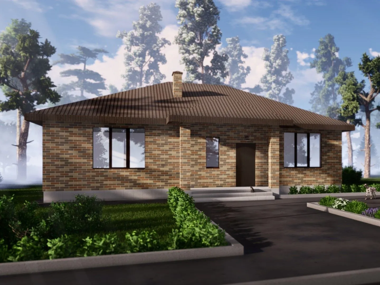 Вас ждёт уютный дом, созданный для комфортного круглогодичного проживания. Один надземный этаж с продуманой планировкой позволяет легко ориентироваться в доме, а классический стиль придаёт ему благородный вид и гармонию с природой. Стены из прочных керамзитобетонных блоков обеспечивают тепло- и звукоизоляцию, а прочная четырехскатная (вальмовая) крыша защитит ваш уют от непогоды. Все детали выполнены с особым вниманием к качеству и долговечности, чтобы вы могли наслаждаться домом долгие годы. Хотя балконы, веранда, крытая автостоянка и чердачное помещение отсутствуют, пространство внутри раскрывается легкостью и светом. Просторные комнаты, открытые коридоры, классическое отделение фасада и надёжная конструкция создают ощущение спокойствия и уюта. Такой дом станет идеальным убежищем для семьи, где каждый уголок вдохновляет на расслабление и общение, а каждый день начинается с приятного вида и ощущения домашней теплоты.