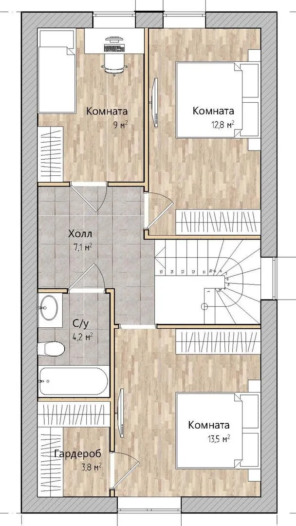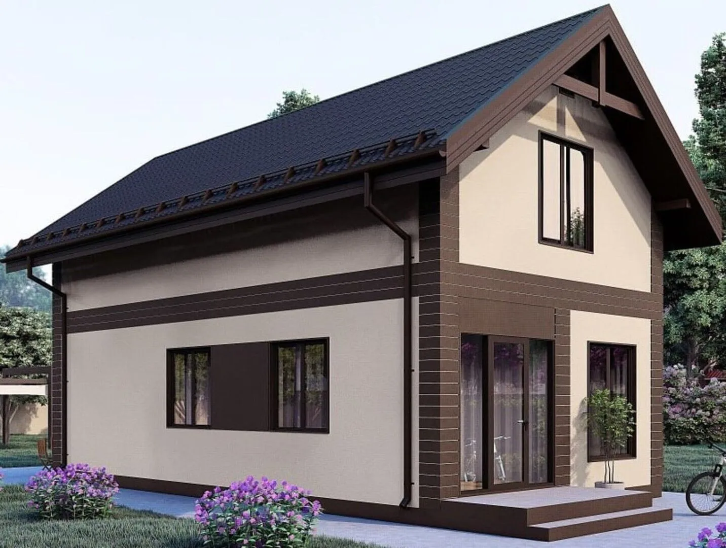 Двухэтажный дом с мансардным этажом