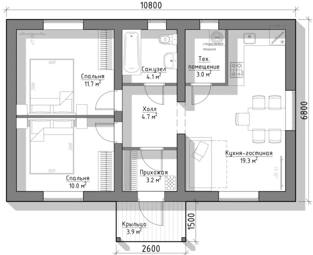 Площадь дома 56 м2