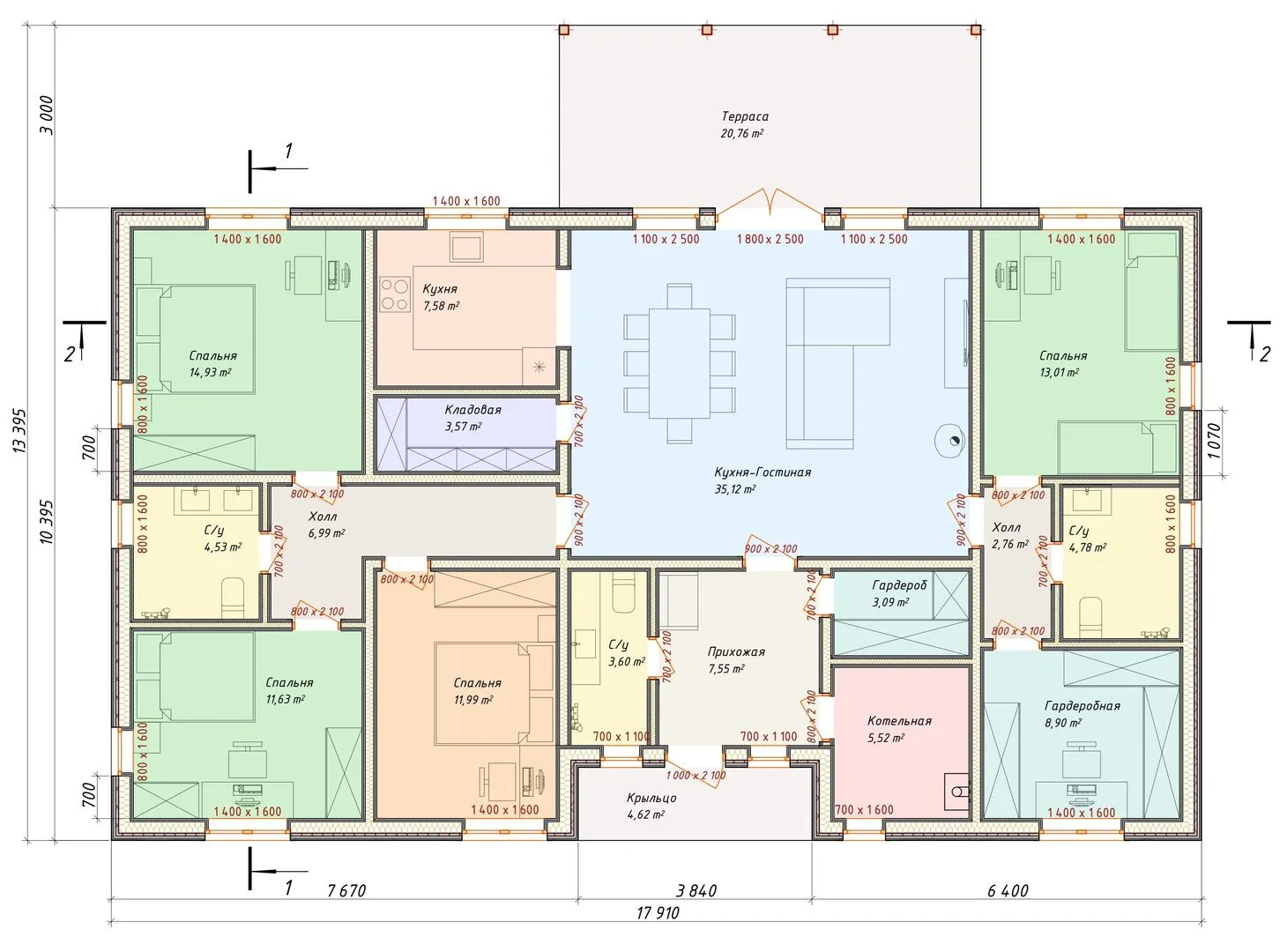 Одноэтажный дом FIXPLANS — 1430