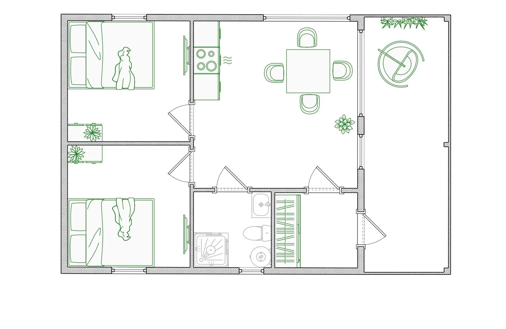 **Барн‑54** — это элегантное сочетание сельского очарования и современного комфорта. Его характерный деревянный наружный каркас и изящная двухскатная крыша делают каждый взгляд на дом приятным сюрпризом: ровные линии и насыщенный брусчатый текстуры создают атмосферу уюта и тепла. Внутри – просторный, светлый единственный надземный этаж, где каждая деталь продумана так, чтобы радовать и вдохновлять. Уникальность Барн‑54 проявится в его уютной веранде, которая открывает дверь в природу и позволяет наслаждаться летними вечерами и зимними закатами у окна. Зима не мешает жить в этом доме: полная тепло- и звукоизоляция, простая крытая автостоянка и надежные утеплённые стены обеспечивают комфорт в любое время года. Беспристрастность без балконов и лоджий, а также отсутствие пристроенного гаража делают пространство более открытым, а простые, но изысканные детали добавляют особый шарм. Если вы хотите почувствовать себя, как в идиллическом сельском уголке, но при этом иметь все удобства городской жизни, Барн‑54 – ваш выбор. Позвольте дому стать местом, где каждый день будет наполнен светом, теплом и простором для творчества. Закажите просмотр уже сегодня и откройте для себя новый стиль жизни.