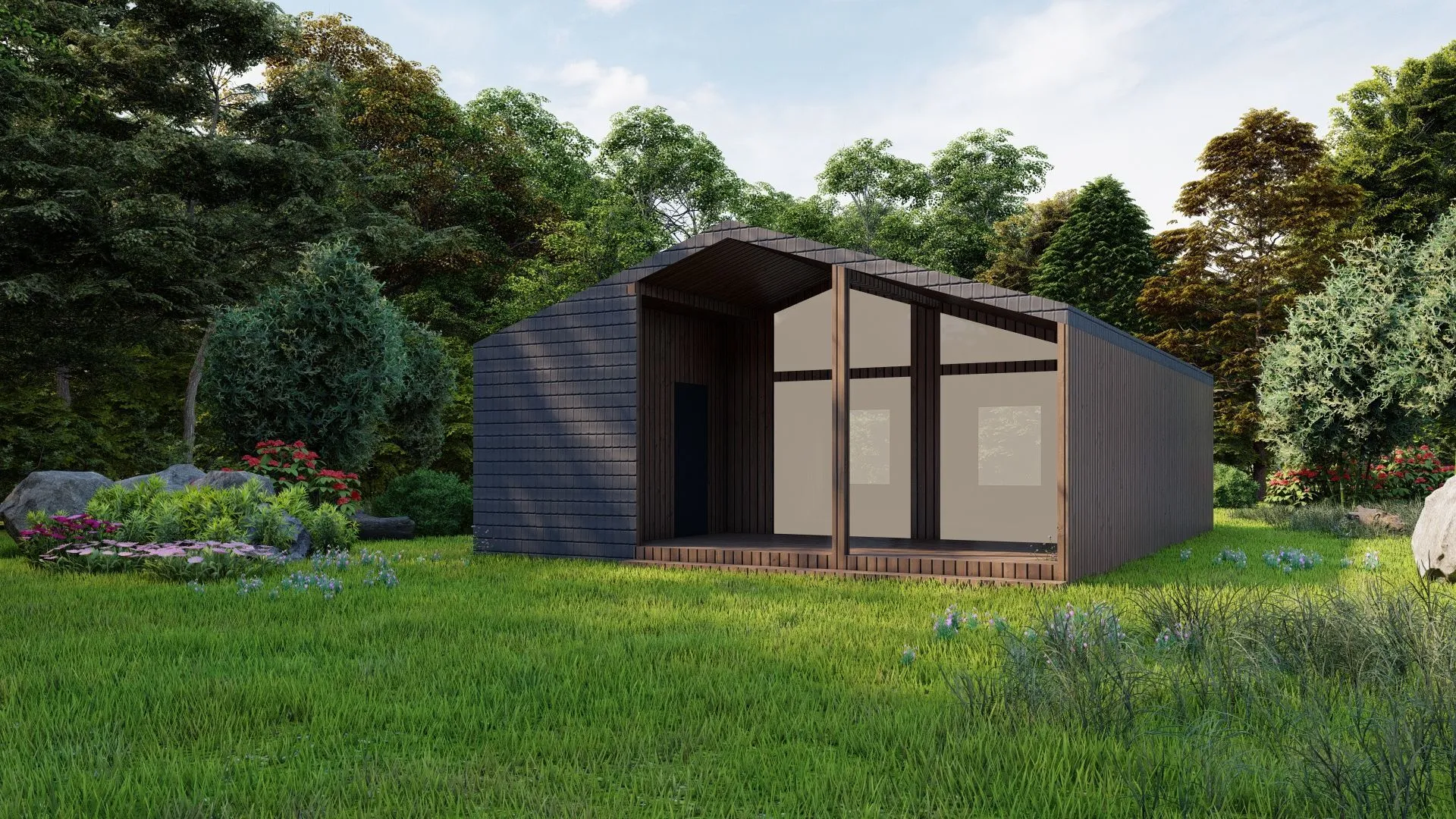 Строительство деревянных каркасных домовСтроительство домовСтроительство домов без балкона или лоджииСтроительство домов без гаражаСтроительство домов без чердакаСтроительство домов в стиле БарнхаусСтроительство домов для круглогодичного проживанияСтроительство домов с верандойСтроительство домов с двускатной крышейСтроительство домов с террасойСтроительство одноэтажных домов