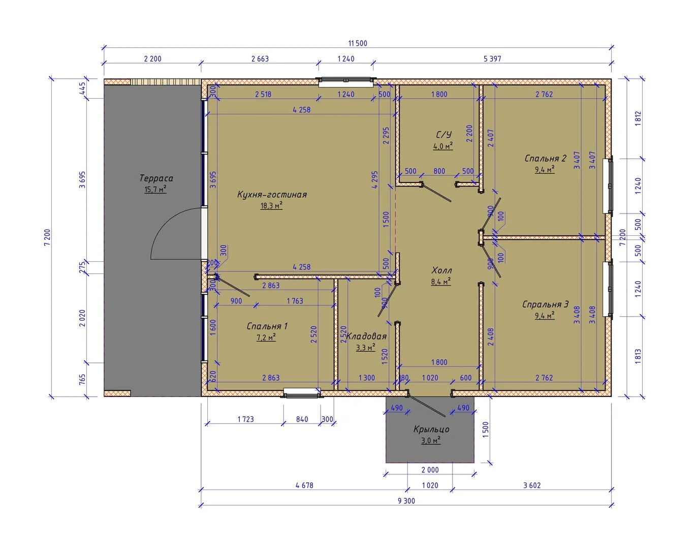 «Волжанин 5К» 6х9 м. с террасой 2х9 м