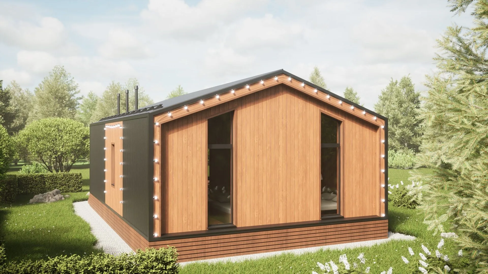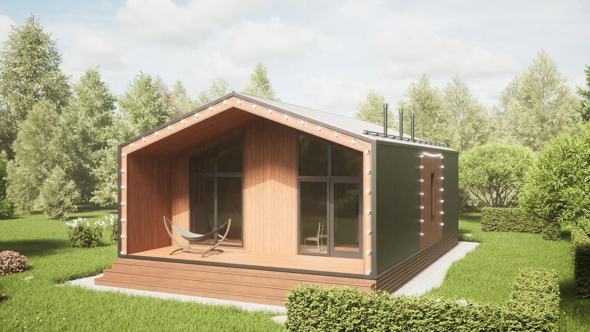 Представляем вашему вниманию настоящий уголок уюта и современного дизайна – Barn‑House, который станет идеальной площадкой для комфортной жизни круглый год. Этот одноэтажный дом сочетает в себе простоту и изысканность: в деревянном каркасном составе каждая деталь продумана как в старом английском фермерском хозяйстве, так и в современной архитектуре. Его массивные деревянные стены, покрытые натуральным лаком, создают дружелюбную атмосферу, а два пентельных крыла придают структуре гармоничную строгость. Отсутствие балконов и веранд лишь усиливает ощущение непрерывной связи с природой, ведь всё пространство открыто и свободно. Солнечные лучи легко проникнуты через большие окна, озаряя внутренний интерьер и создавая ощущение простора и свежести. А просторная терраса, выходящая вниз на зелёный двор или сад, становится идеальным местом для вечерних бесед и солнечных перекусов. Именно здесь вы сможете насладиться тишиной даже в гуще городской суеты. Построенный с высоким вниманием к деталям, этот Barn‑House демонстрирует идеальное сочетание практичности и эстетики: двускатная крыша не только защищает от непогоды, но и подчеркивает характер дома, придавая ему неповторимый сельский шарм. Нет прикрытых гаражей, но это делает дом более легким и ближе к природе. Если вы мечтаете о спокойном, но одновременно стильном месте для жизни, где каждый день открывается как новая сказка, то этот дом ждёт только вас.