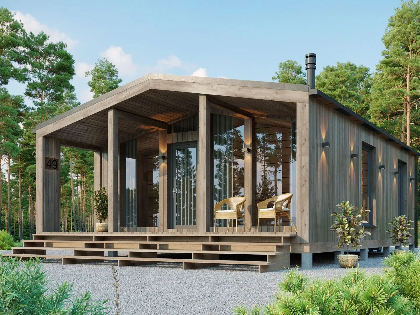 Идеальная гармония простоты и современного стиля – ваш новый дом BARN49 с боковым входом. В этом уютном одноэтажном убежище, выполненном в барнхаус‑стиле, каждый уголок пропитан естественной теплотой дерева. Двускатная крыша с массивными каркасными стенами создаёт ощущение надёжности и уюта, а обедённый простор позволяет комфортно проживать круглый год, не думая о холодных ветров и перепадах сезонных температур. Терраса, открывающая панораму вокруг, станет вашим личным уголком для уединённого отдыха, зарядки свежим утром и наслаждения закатами. Внутри просторные помещения дарят свободу стилистических выбора: можно оформить как минималистичные loft‑пространства, так и более традиционные зоны с открытой кухней и гостиной. В BARN49 отсутствуют балконы, прилавочные пространства и гараж, но это лишь подчёркивает скромную чистоту дизайна, позволяя концентрироваться на главном – на семье, друзьях и приятных моментах, которые здесь созданы. Этот дом – идеальное сочетание функциональности и эстетики. В нём вы почувствуете себя по-настоящему дома, при этом его современный облик точно выделит ваш стиль среди окружающих. BARN49 – ваш новый старт, при котором каждый раз придётся восхищаться простотой и продуманностью.