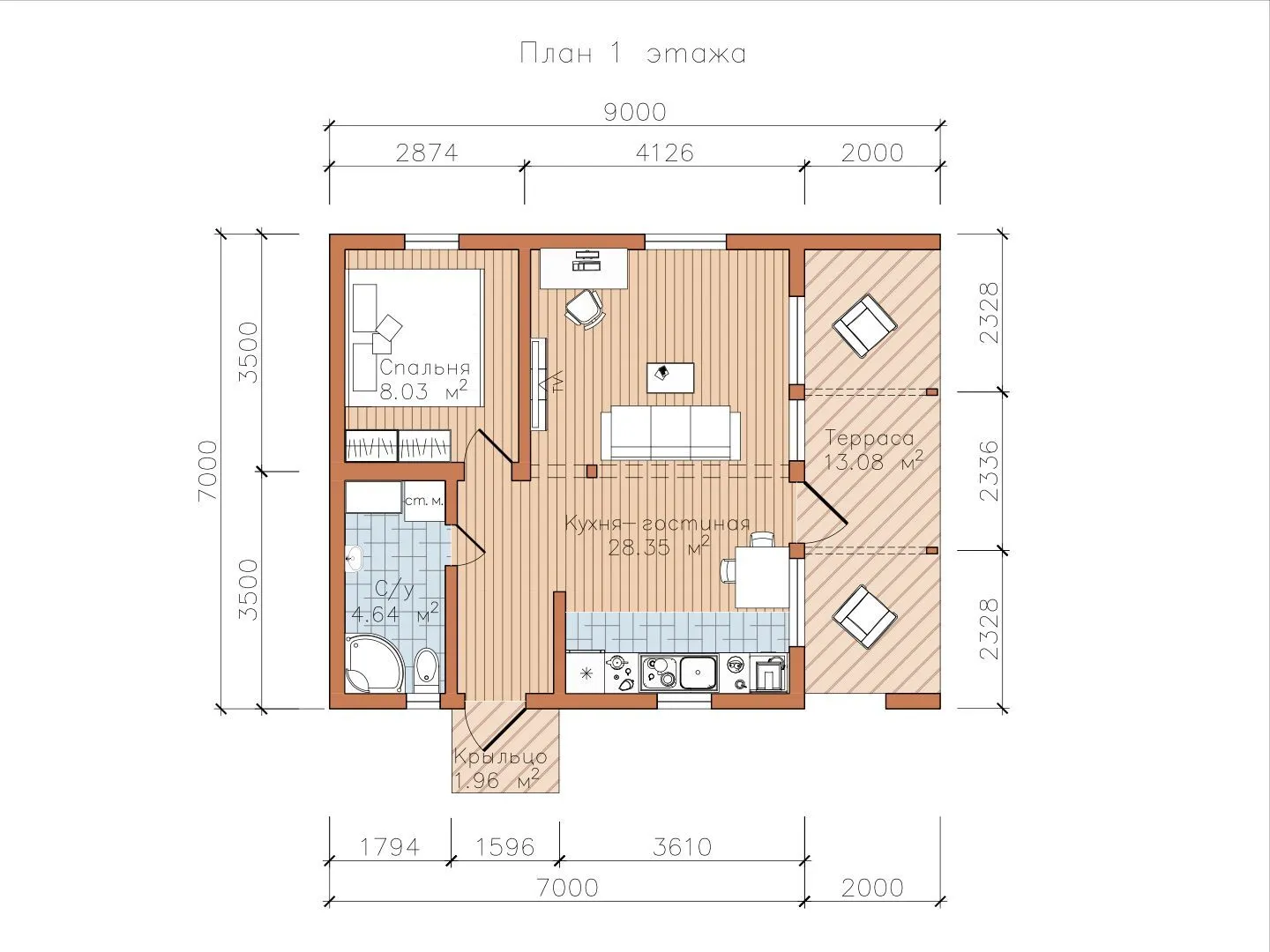 Площадь дома 54 м2