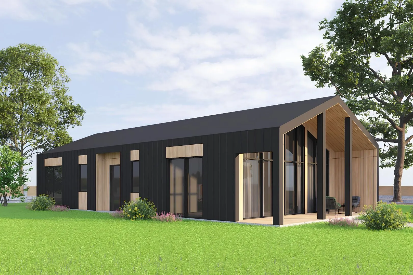 Строительство деревянных каркасных домовСтроительство домовСтроительство домов без балкона или лоджииСтроительство домов без гаражаСтроительство домов без чердакаСтроительство домов в стиле БарнхаусСтроительство домов для круглогодичного проживанияСтроительство домов с верандойСтроительство домов с двускатной крышейСтроительство домов с террасойСтроительство одноэтажных домов