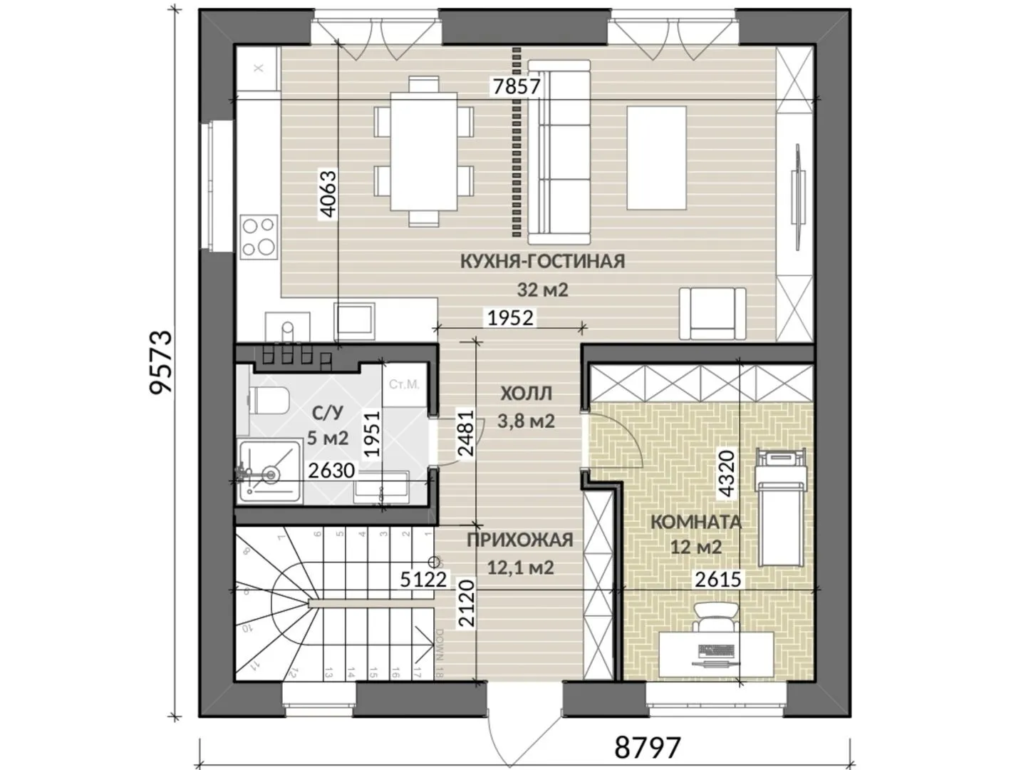Совмещенная кухня-гостиная
