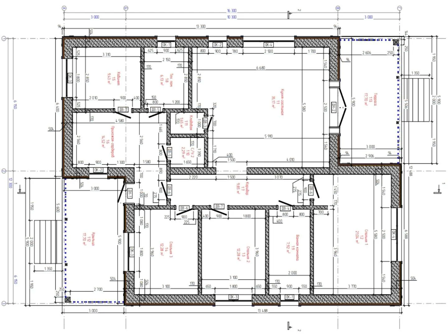 Толщина внутренних перегородок