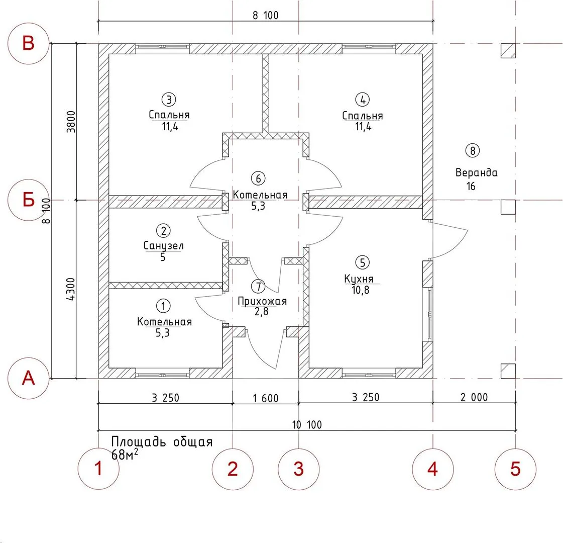 Площадь дома 68 м2