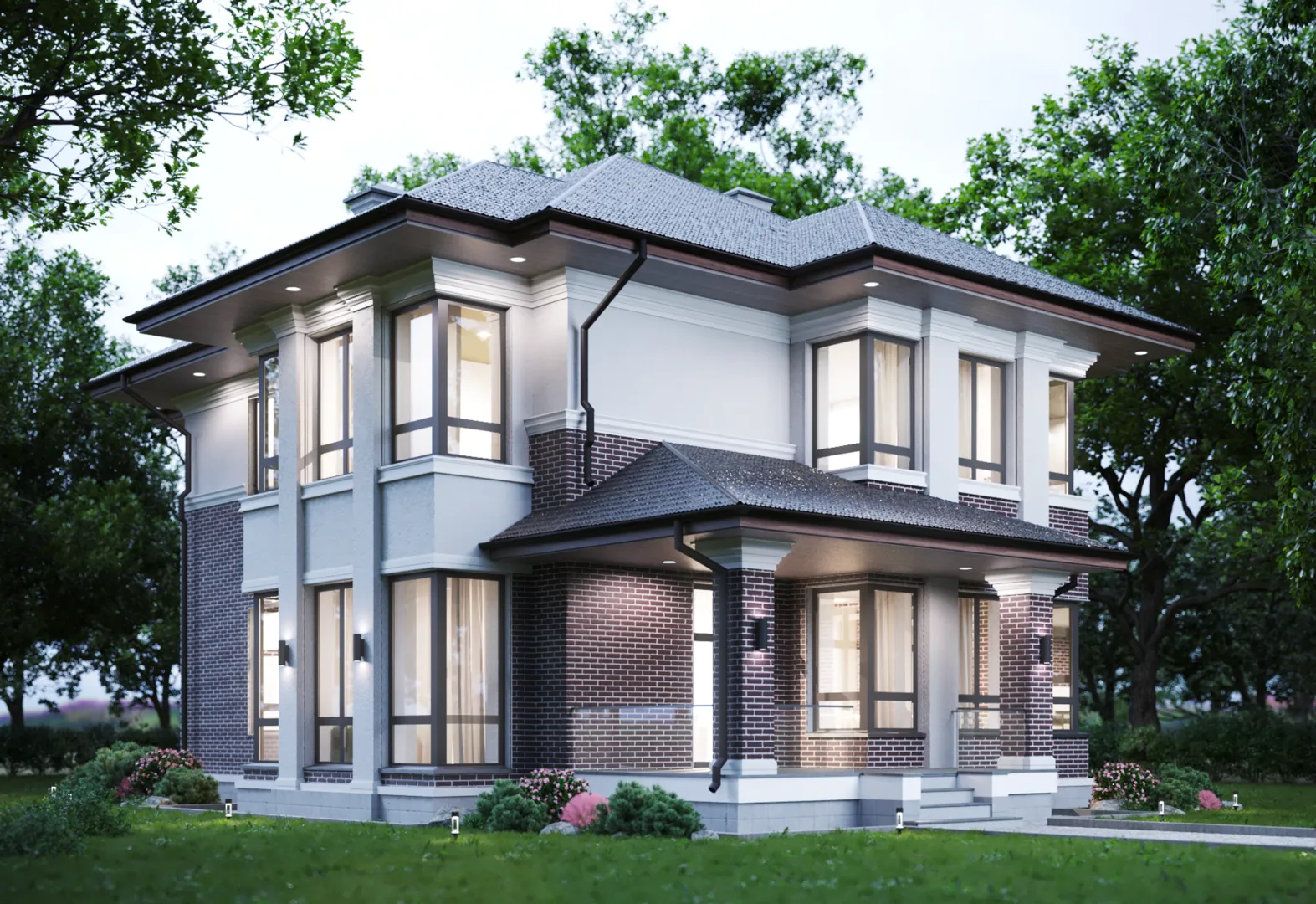 **Bergamo** – это уютная двухэтажная резиденция, созданная для тех, кто ценит гармонию простоты и современности. Ее американско‑канадский стиль напоминает о теплой атмосфере западноамериканских заграничных домиков, но при этом сохраняет строгий и лаконичный характер. Вы сразу заметите, как мягкий рисунок керамического блока, плавно переходящий в широкую вальмовую крышу, создаёт ощущение надежности и уюта. Внутреннее пространство продумано до мелочей: просторные открытые зоны, большие окна, пропускающие дневной свет, и обширная веранда с открытой площадкой для барбекю, где можно проводить вечерние часы с семьей или друзьями. На верхнем этаже – тихая обсерватория, где можно наслаждаться рассветами и закатами. Гараж и крытая автостоянка обеспечивают удобство и защиту автомобилей, а чердачное помещение предоставляет дополнительные площади для хранения или будущих проектов. На террасе, открытой от ветра и холода, удобно устроиться после долгого дня, наслаждаясь свежим воздухом и звуками природы. Дом способен адаптироваться к любым сезонам. Качественные материалы внешних стен и надежная крыша гарантируют комфорт даже в самые суровые зимы, а стильный и практичный дизайн делает его идеальным выбором для круглогодичного проживания. Bergamo – это не просто жильё, а место, где каждая деталь отвечает за ваше благополучие и ощущение тепла, которое хочется разделить с близкими.