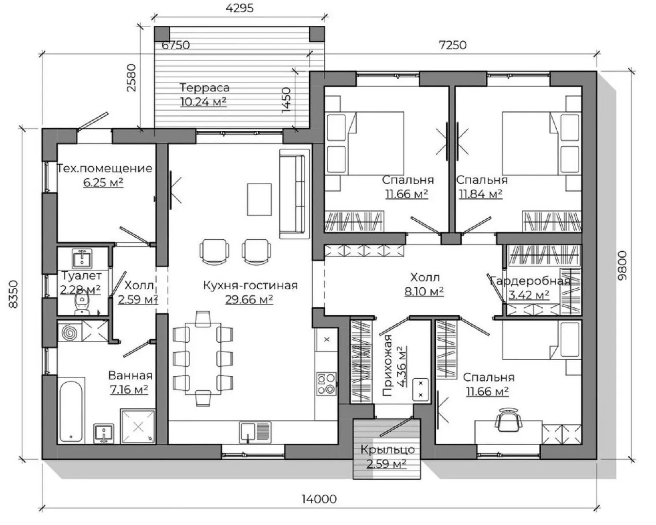 Индивидуальный жилой дом площадью 109 м2