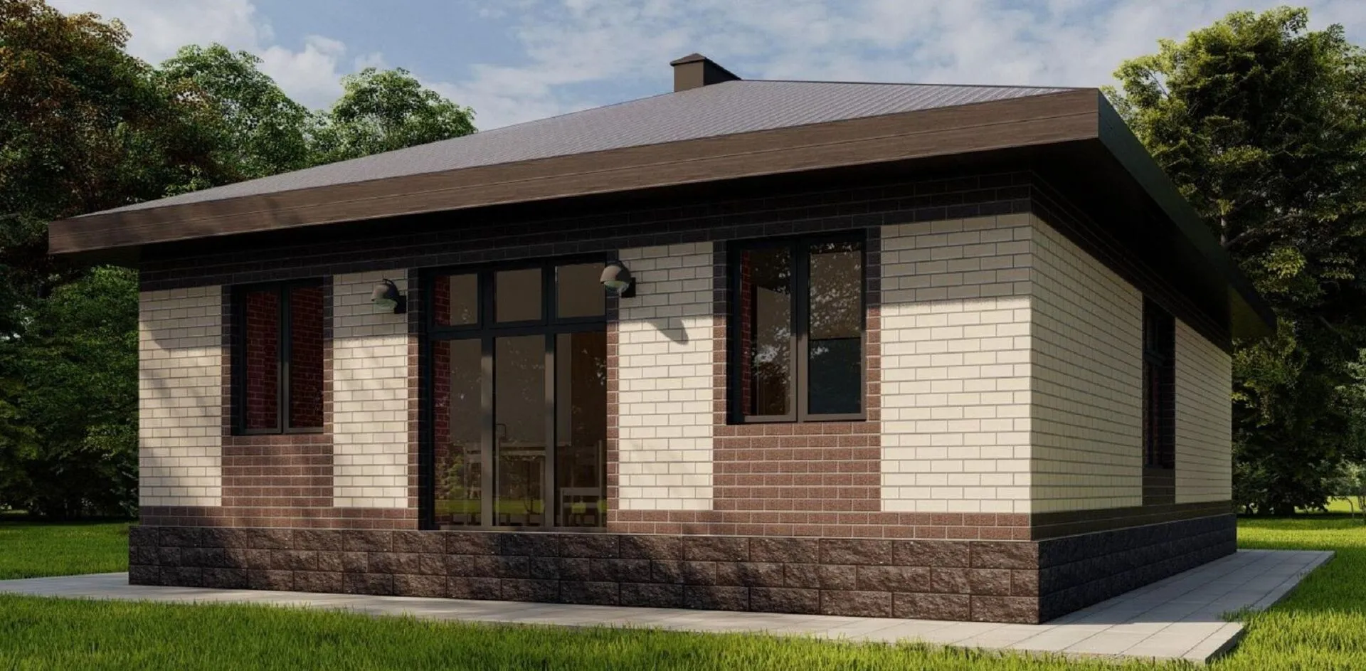 **Звёздный дом из кирпича – «Brick 98»** Притягательность этого одноэтажного очарованного дома сливается с утонченными чертами классической архитектуры. Его наружные стены, выполненные из надёжного кирпича, создают ощущение тёплой стабильности и придаё­т фасаду элегантный, но одновременно и надёжный вид. Классический стиль подчёркнут плавными линиями крыши высотой в четыре ската (вальмовой тип), который не только придаёт дому благородный облик, но и гарантирует надёжную защиту от дождя и снега в любую погоду. Тёплое каменное сердце «Brick 98» делает его идеальным для круглогодичного проживания: кирпич удерживает тепло в холодные дни и охлаждает в жару, сохраняя комфортное микроклиматическое окружение внутри. Увлечённые домашним уютом будут оценить простоту обслуживания наружных поверхностей — кирпич не подвержен гниению, не требует частых красок или ремонта. Внутреннее пространство, открытое и воздушное, удобно для семейного уюта, а отсутствие балконов, веранды или подземного гаража создаёт ощущение простора и свободы. Если вы ищете гармоничное сочетание традиций и практичности, дом «Brick 98» – ваш идеальный выбор. Он дарит тёплый, защищённый уголок, где каждая деталь проработана с заботой о комфорте и длительной красоте. Позвольте себе шагнуть в мир, где классика встречается с современными удобствами, и почувствуйте, как уют заполняет ваш новый дом.