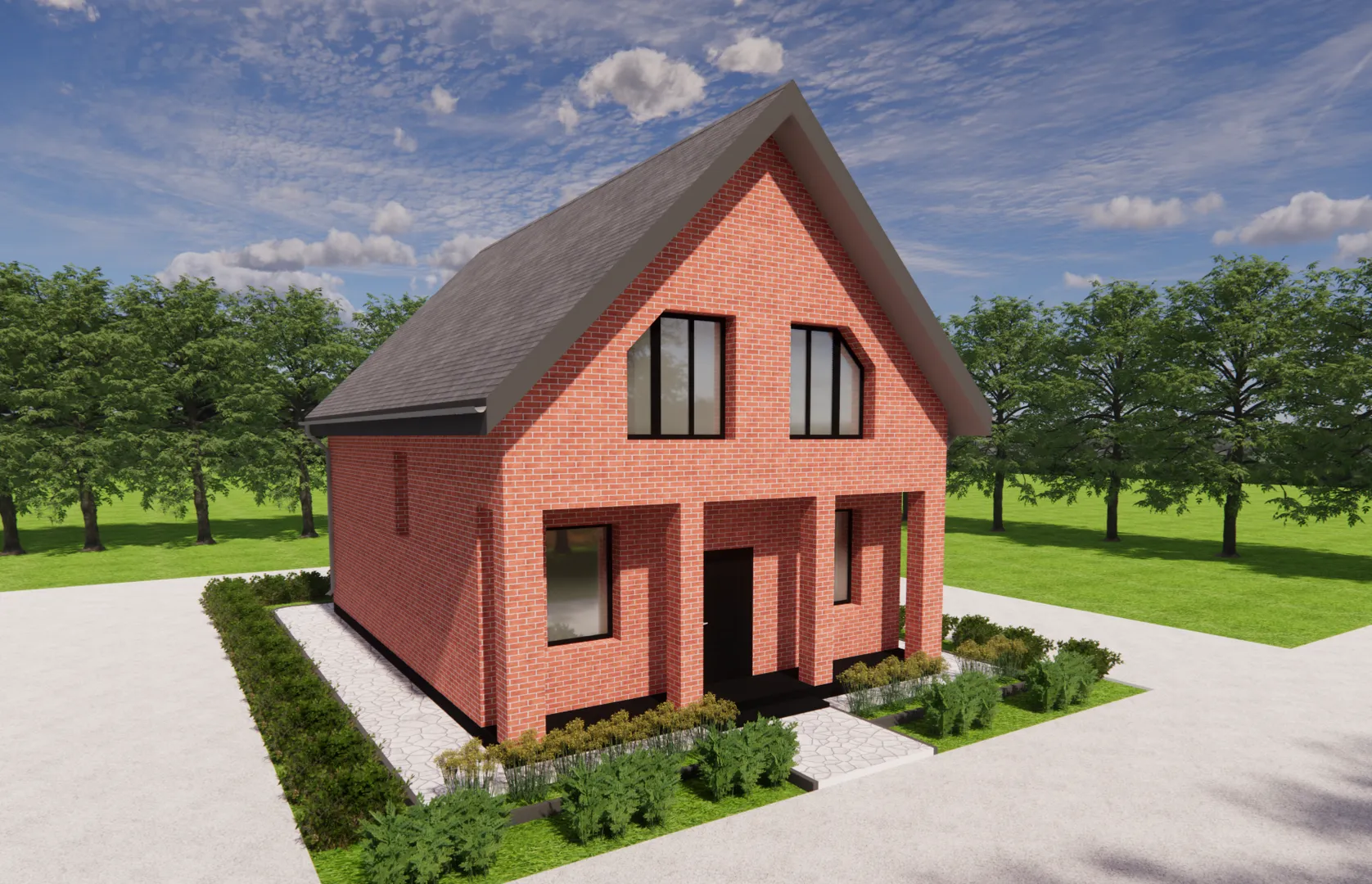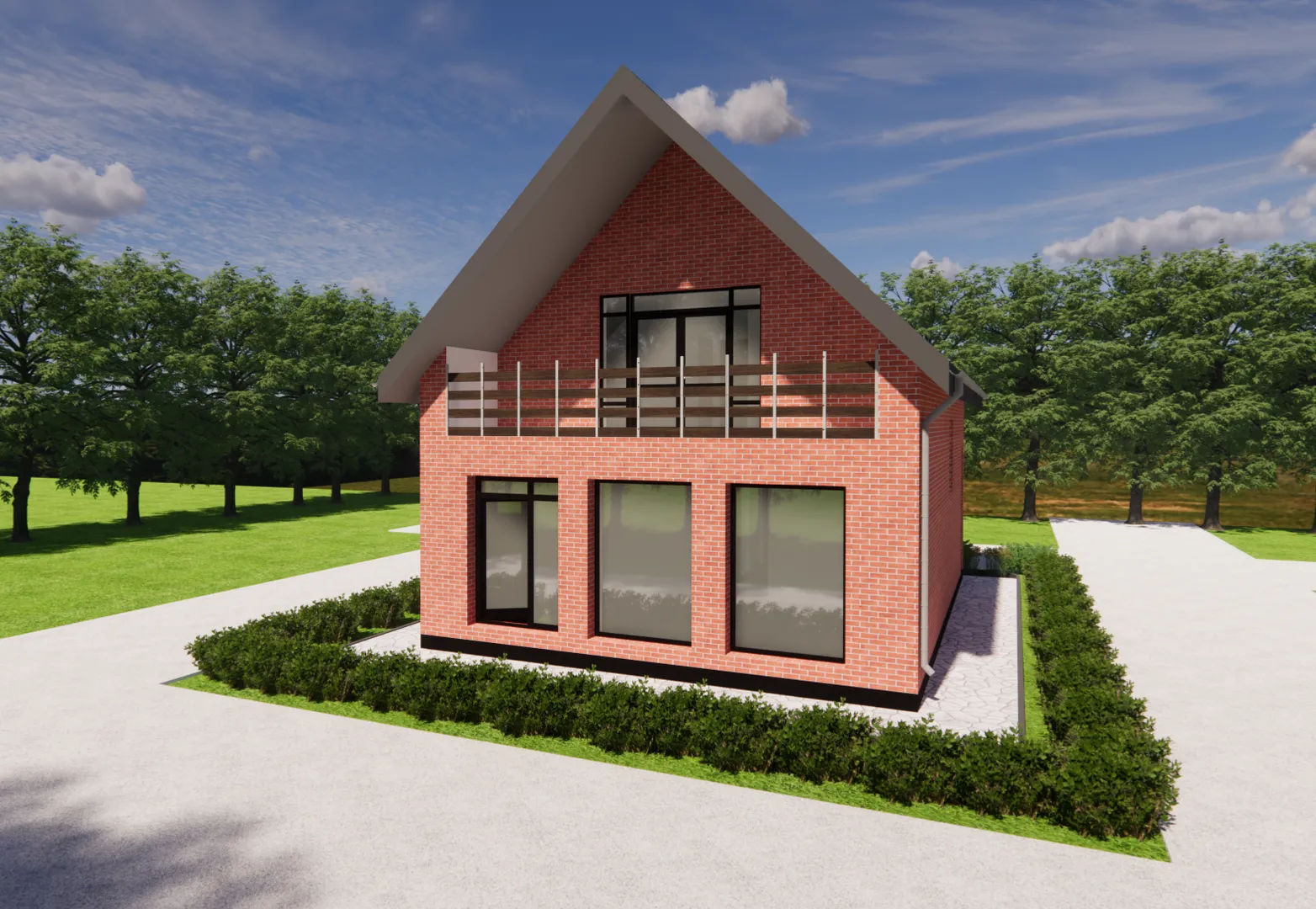 Бюджетный двухэтажный дом с балконом, панорамными окнами