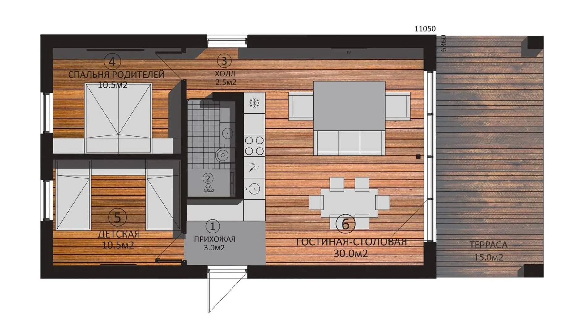 Позвольте представить *CERTUSHAUS60* – настоящий уголок уюта, где каждая деталь создана с любовью к природе и комфорту. Этот дом в стиле Barnhouse сочетает в себе искренний скандинавский колорит и современные принципы энергоэффективности, благодаря чему он остаётся неповторимо живописным и пригодным для проживания круглый год. Одноэтажный корпус позволяет без труда перемещаться по дому, а деревянные каркасные стены передают тепло и свежесть лесных чащ. Внутреннее пространство – это настоящий оазис спокойствия: высокий потолок, большие окна, залитые естественным светом, и изящные деревянные детали создают атмосферу уюта и гармонии. Благодаря высокой теплоизоляции и продуманной вентиляции, дом сохраняет комфортную температуру даже в суровые зимы, а в летнюю жару остаётся прохладным и приятным. Просторные комнаты, открытая кухня и уютный зал подарят вам и вашей семье ощущение единства и домашнего тепла. Наслаждайтесь свежим воздухом и видом на природу на просторной террасе, где можно устроить барбекю в летнее время или просто посидеть с чашкой кофе в нежном луче утреннего солнца. *CERTUSHAUS60* – идеальный выбор для тех, кто ценит аутентичность, простоту и связь с природой без излишеств. Приглашаем вас открыть для себя эту сказку, превратив свой дом в продолжение семейных традиций и счастливых воспоминаний.