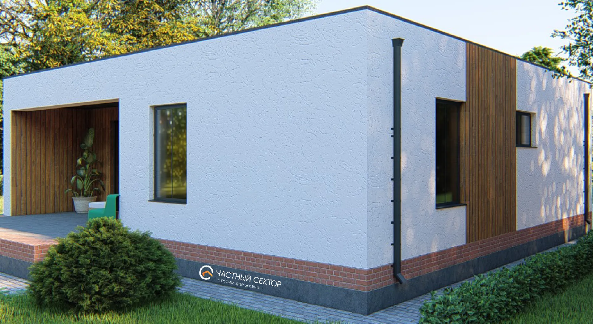 Круглогодичный уют в каждом уголке этого уютного одноэтажного дома дарит вам ощущение дома даже в самые суровые морозы. Стильный классический фасад и ровно выровненная плоская крыша создают элегантный образ, в гармонии с природой и историей вашего района. Нежные газобетонные блоки, из которых выполнены внешние стены, гарантируют теплоизоляцию и долговечность: ваш комфорт не будет подвержен перепадам температуры, а энергозатраты останутся на оптимальном уровне. Дом приглашает к расслабляющим вечерам на просторной веранде, где можно наслаждаться видом на закат, а также проводить приятные встречи с друзьями, не покидая уюта. Благодаря планировке без лишних балконов или террас, пространство распределено так, чтобы каждому уголку было принято и безопасно. Отсутствие чердака и закрытых парковок делает ландшафт более открытым и ухоженным, а отсутствие загородного гаража даёт свободу в выборе места для авто – просто припаркуйте машину в удобном внешнем уголке. В итоге, получаем идеальное сочетание комфорта, стиля и практичности, которое делает этот дом идеальным выбором для тех, кто ищет гармоничное место для жизни на любой вкус.