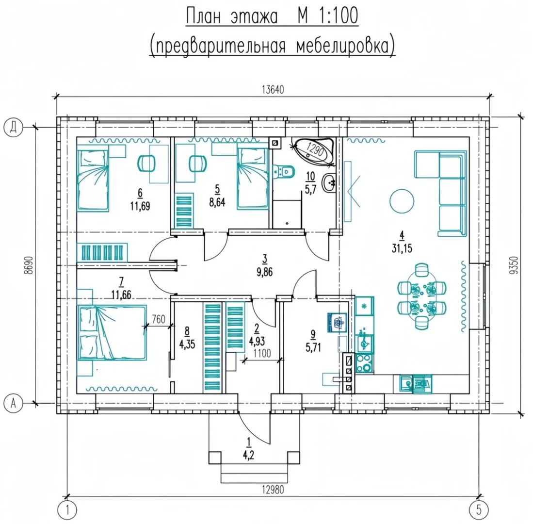 Добро пожаловать в «Classic 13» — уютную и элегантную 1‑этажную резиденцию, созданную для тех, кто ценит классику и комфорт. Дом из керамзитобетонных блоков отличается стройной и надёжной конструкцией, придающей структуре долговечность и теплоизоляцию. Четырёхскатная (вальмовая) крыша с аккуратной линией добавляет архитектурному обрамлению лёгкости и изысканности. Такое сочетание материалов и дизайна создаёт атмосферу спокойствия и надёжности, как в традиционной усадьбе, но с современным уровнем комфорта. «Classic 13» — это идеальное решение для круглогодичного проживания. Просторный внутренний план без лишних излишних деталей позволяет гибко распределять пространство под нужды любой семьи: от уютной гостиной в центре, где тихий свет льётся через большие окна, до тихой спальни с удобной площадкой под кровать. Внутри дома ощущается тепло, словно с каждым днём вы будете впитывать солнечные лучи, которые мягко наполняют каждый уголок. При этом отсутствие балконов, веранд и других открытых придатков упрощает обслуживание и гарантирует спокойный, защищённый внутренний климат. В «Classic 13» каждая деталь продумана: простые, но элегантные линии придают дому благородный вид, а высококачественные строительные материалы обеспечивают тепло и звукоизоляцию на высоком уровне. Этот дом станет вашим личным уголком тепла и уюта, где традиции встречаются с современным комфортом, а каждый прожитый здесь день будет сопровождаться тихим шёпотом классической архитектуры. Если вы ищете дом, где ценят качество, простоту и неповторимый стиль, «Classic 13» — ваш идеальный выбор.