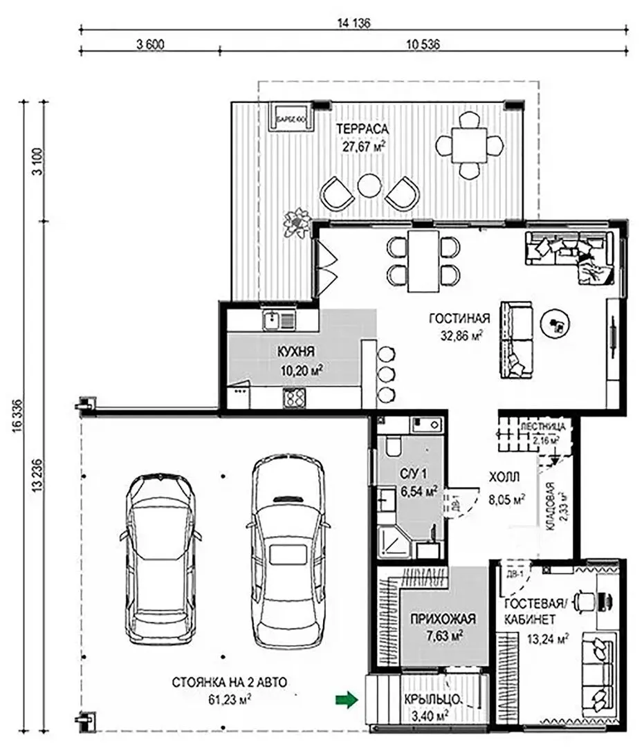 Пристроенный гараж/крытая автостоянка