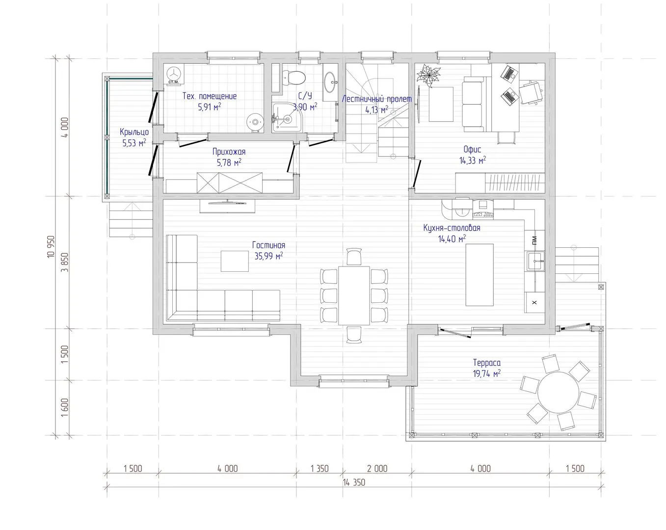 Совмещенная кухня-гостиная