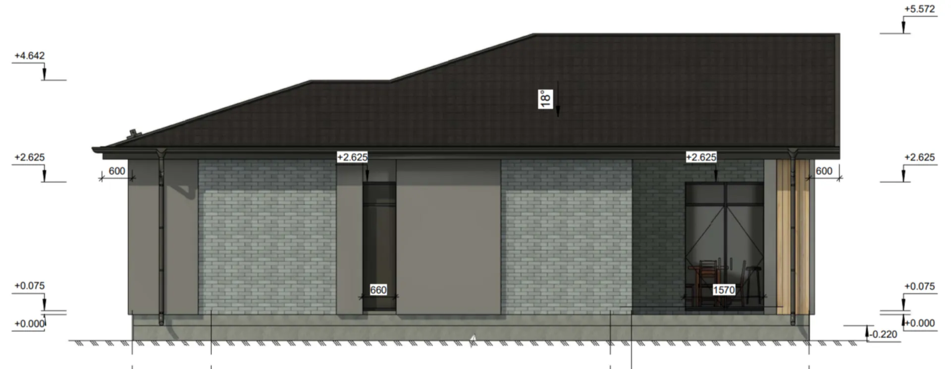 Сияя элегантностью в европейском стиле, дом D130 — это идеальное сочетание уютного семейного очага и современного комфорта. Величественная керамическая кладка излучает тепло и надежность, а комбинированная крыша создаёт гармоничную, почти монументальную перспективу. Благодаря одному надземному этажу и чердачному пространству, каждый уголок этого дома наполнен светом и простором, позволяя без лишнего стресса распланировать пространство для ваших потребностей. Жизнь здесь доступна круглый год: просторные зоны обстановлены так, чтобы вы почувствовали себя защищённым от любых погодных условий, а не требующая дорогих изысканий инфраструктура обеспечивает максимальную простоту и функциональность. На удобной террасе можно наслаждаться закатами, не отрываясь от семейной жизни, а отсутствие балконов и веранд — гарантирует внутренний мир и более закрытое, защищённое пространство. Это идеальный вариант для тех, кто ценит качество и простоту, не жертвуя стильным дизайном и практичностью жизни.
