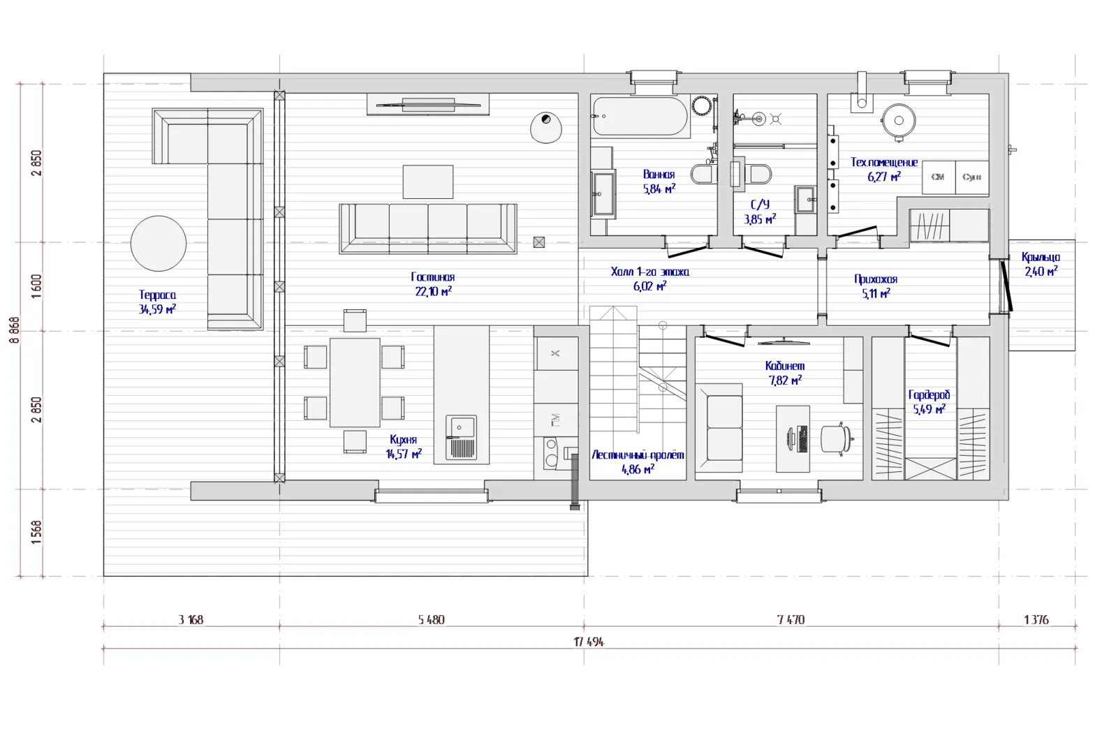 Строительство двухэтажных домовСтроительство деревянных каркасных домовСтроительство домовСтроительство домов без балкона или лоджииСтроительство домов без гаражаСтроительство домов без чердакаСтроительство домов в стиле БарнхаусСтроительство домов для круглогодичного проживанияСтроительство домов с верандойСтроительство домов с двускатной крышейСтроительство домов с террасой
