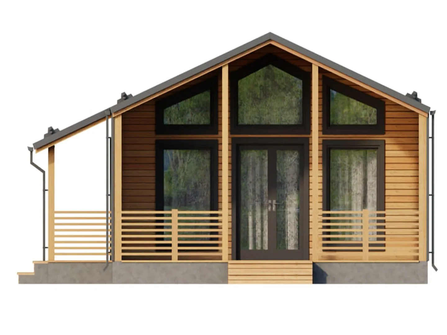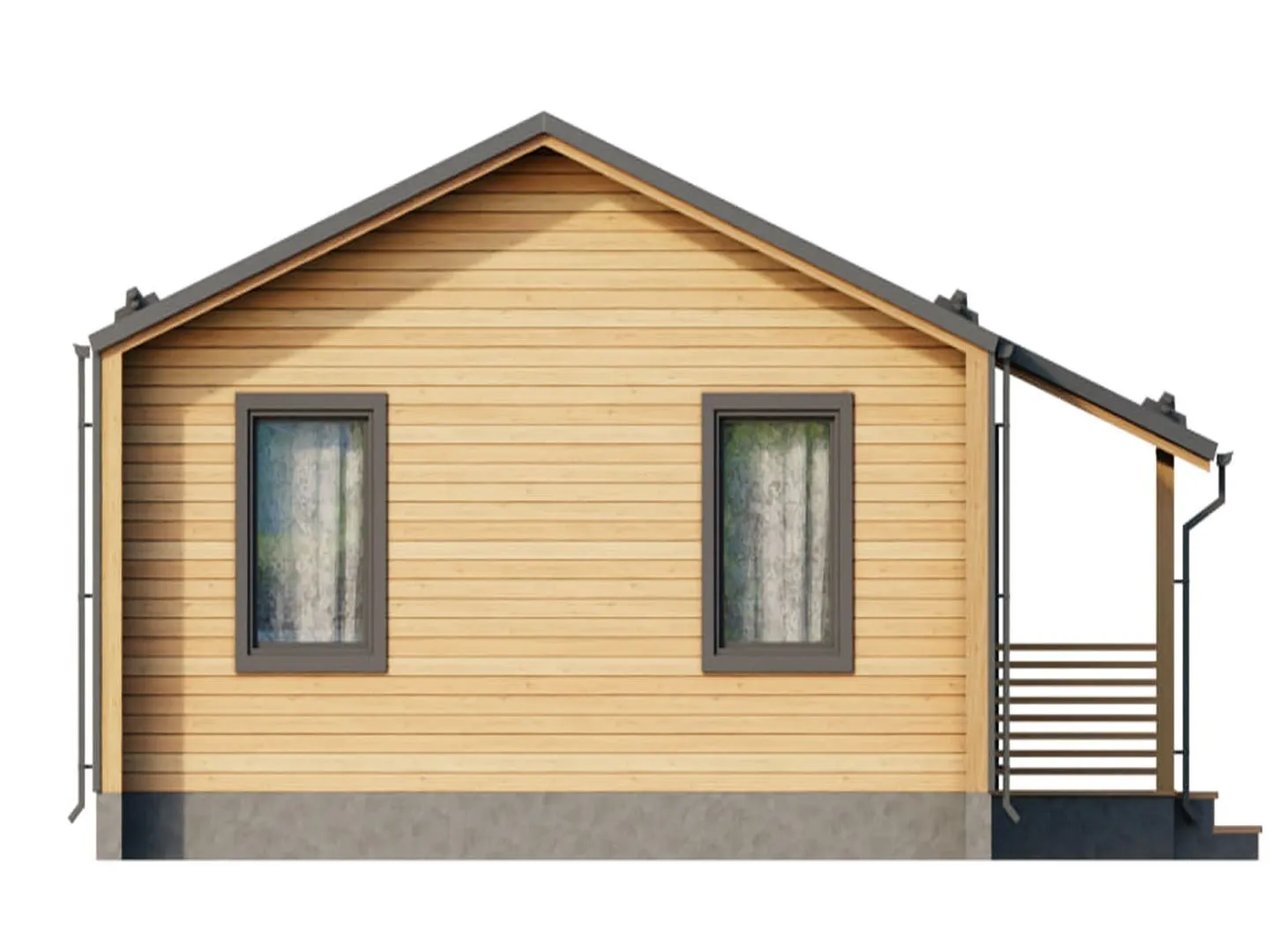 **Деревянный дом Барнхаус 74** – это настоящее воплощение спокойствия и уюта, где каждый уголок создан с заботой о комфорте и гармонии с природой. Первое, что привлекает взгляды, – это простая, но элегантная одноквартирная планировка, в которой каждая деталь выстроена в единое целое. Внутренние помещения располагаются на уровне земли, что обеспечивает естественное ощущение баланса и открытости. Внутри царит тёплая атмосфера: деревянные балки и открытые полы создают ощущение простора, а большие окна наполняют пространство естественным светом, создавая при этом впечатление «живого дома». Дом предназначен для круглогодичного проживания, поэтому он не только выглядит стильно, но и практичен. Двускатная крыша защищает от непогоды, а деревянный каркас – обеспечивает теплоизоляцию и долговечность конструкций. Он не имеет лишних балконов или веранд, но компенсирует это широкой террасой – идеальным местом для летнего барбекю, уютных вечеров с книгой, а также для наслаждения видами на окрестную природу. В доме нет прицепленных гаражей, но всё что нужно для хранения может быть удобно размещено в небольших отсеках – простое, но функциональное решение. Этот Барнхаус – словно укрытая уютная долина, где каждый метр был продуман так, чтобы превратить ежедневную рутину в праздник тишины и уединения. Его эстетика и практичность объединены в гармоничном балансе, который сделает ваш дом не просто местом жительства, а настоящим оазисом для души и тела. Если вы ищете дом, где современный комфорт встречается с натуральной эстетикой, Барнхаус 74 ждет вас.