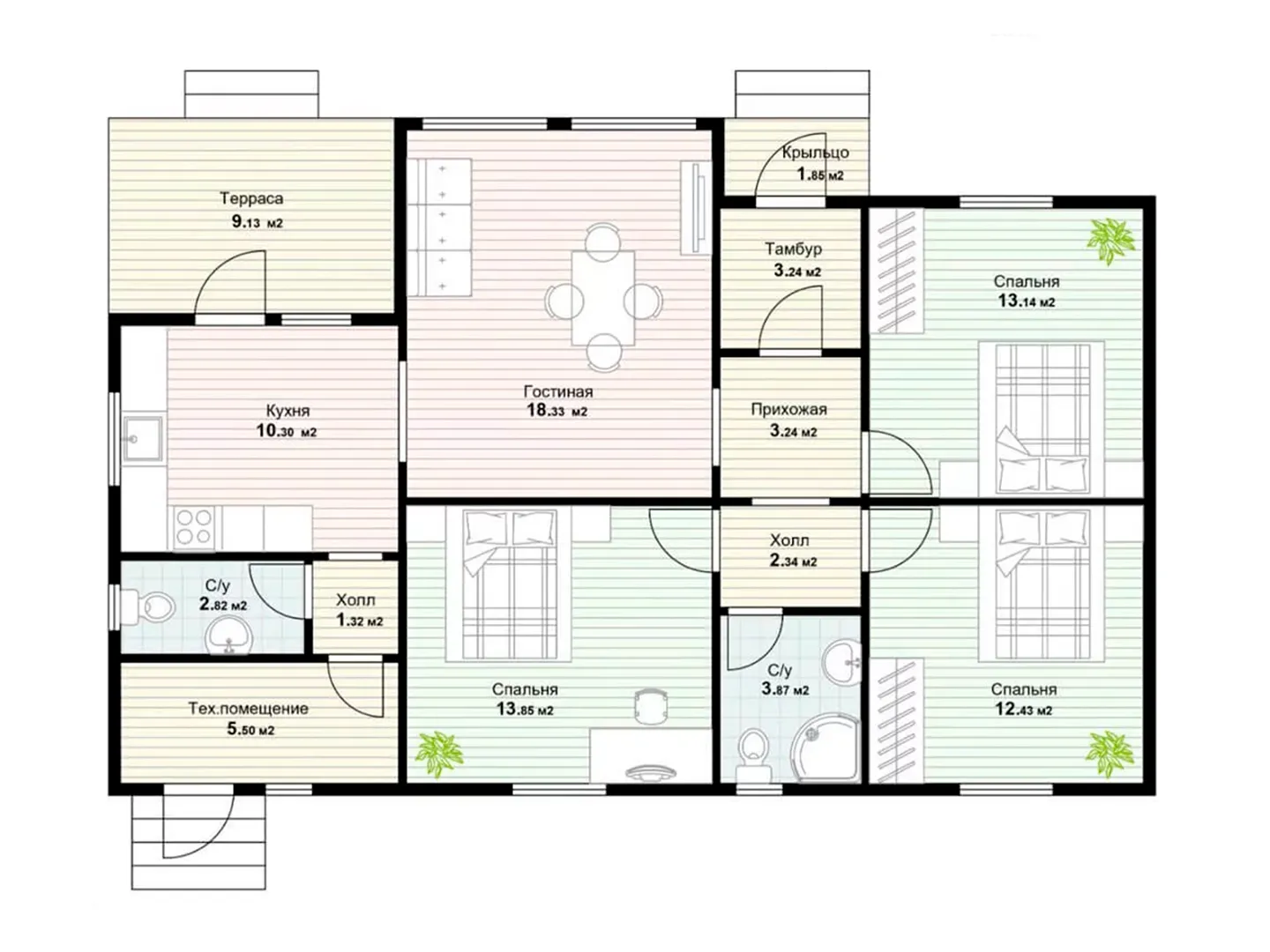 Погружаемся в атмосферу спокойного европейского усадебного стиля: один уютный надземный этаж, где каждый уголок расцвечивается мягким светом, а просторные комнаты создают ощущение лёгкой свободы. Дом спроектирован так, чтобы в любую пору года вы чувствовали себя дома – тепло, уют и защита от непогоды без лишних шумов в виде балконов, верандами или складными крыше. Внутреннее пространство открыто, как будто природа мягко нависла над вами: высокие потолки и обширные полки из светлого дерева подчёркивают легкость и благородство интерьера. На территории дома разместилась большая терраса, приглашающая к вечерам с чашкой ароматного кофе и к живой беседе за открытым воздухом. Внешние стены выполнены из качественного деревянного каркаса, что придаёт дому естественность и тепло, а комбинированная крыша — классический европейский стиль в гармонии с природой. Никаких сложных архитектурных решёек, при этом дом остаётся функциональным: нет крытых автостоянок или прицепов, а просторный гараж не требуется. Такое сочетание простоты и лаконичности – идеальная отправная точка для тех, кто ценит чистоту, природный материал и уютный ритм жизни.