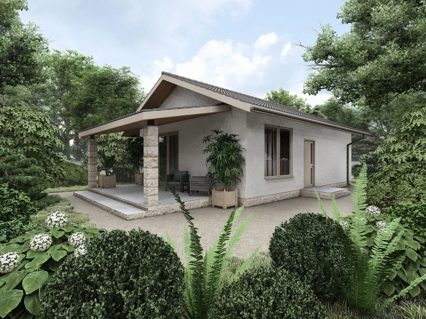 Одноэтажный кирпичный дом BUSINESS — 131 m2 Белый облицовочный кирпич
