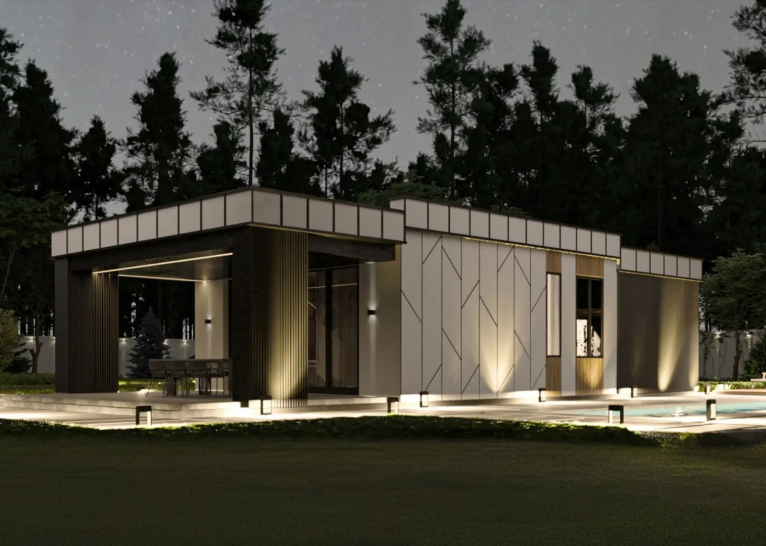 Заказать конусльтацию по:Дом 1 этажный ХайТек 180