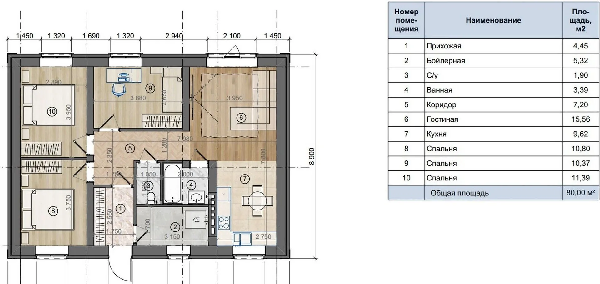 Площадь дома 80 м2