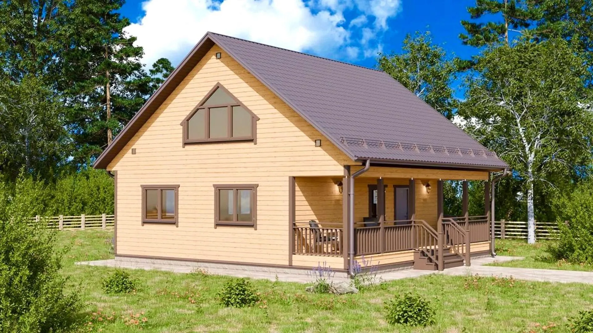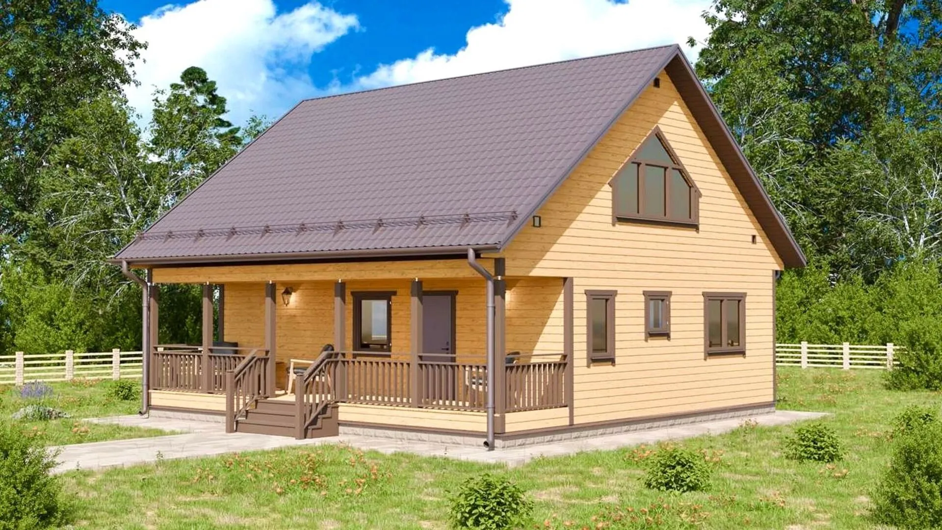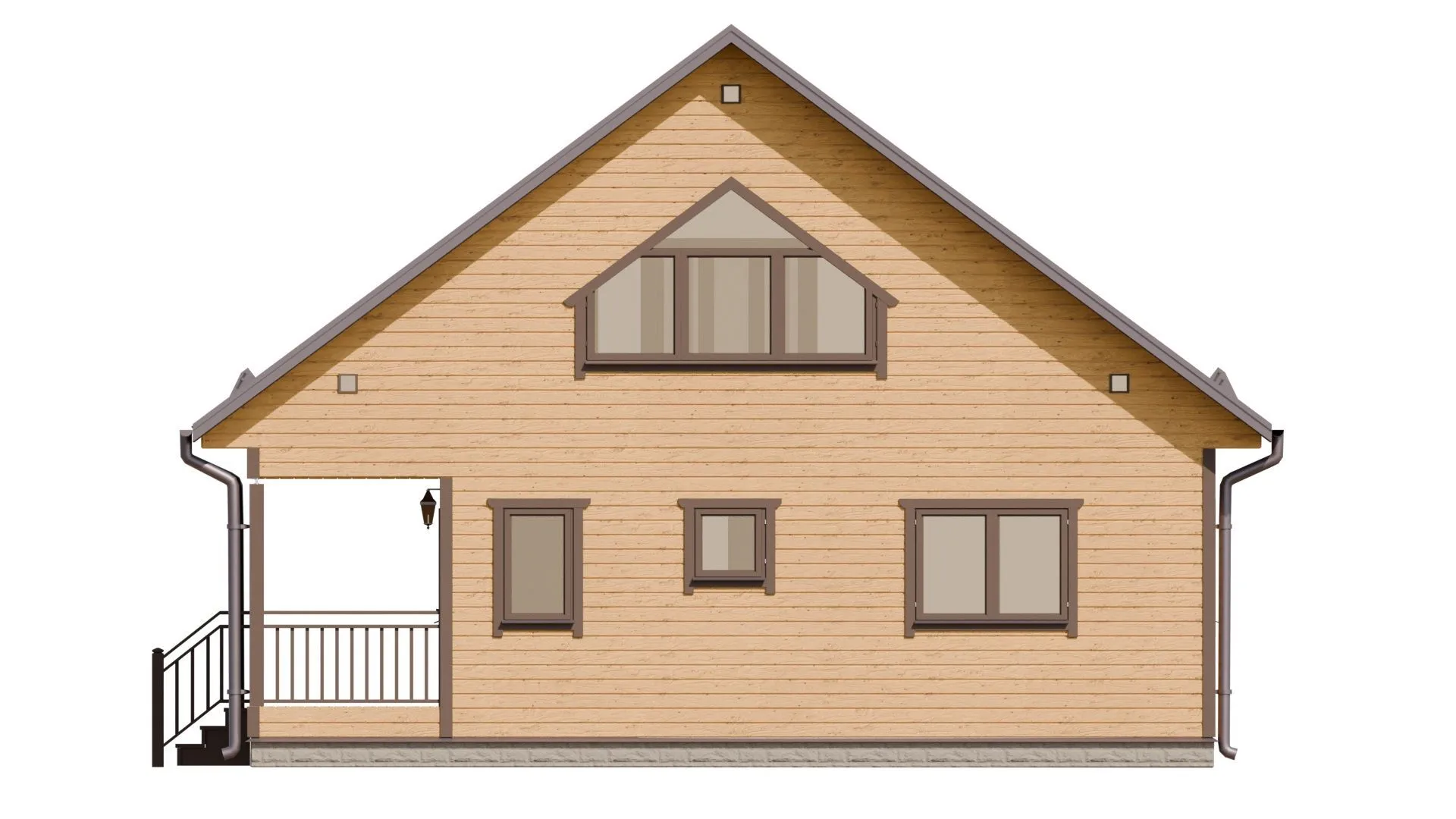 Дом из бруса с террасой и мансардным этажом