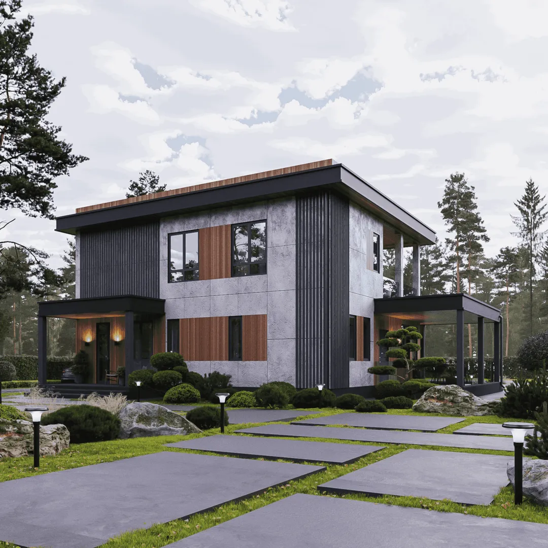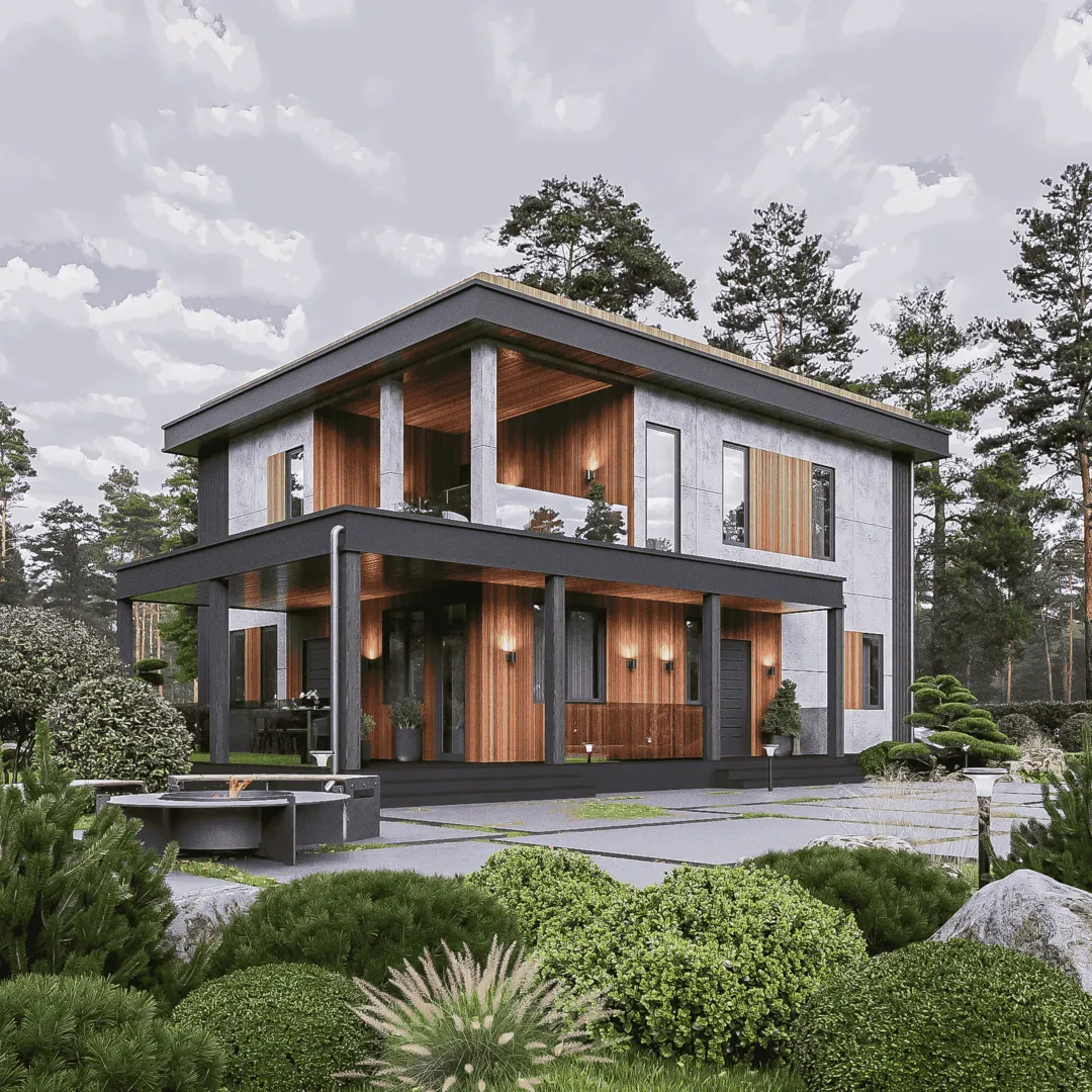 Добро пожаловать в дома «Рассказово» – современное решение для комфортной жизни в гармонии с природой. Каждый объект построен из качественных CLT‑панелей, которые обеспечивают надежную тепло- и звукоизоляцию, долговечность и экологичность. Благодаря использованию клееного бруса, в конструкции достигается легкость и упругость, а плотный фундамент позволяет с уверенностью планировать будущее семьи. Экологичный материал не только сохраняет тепло в любое время года, но и дарит приятный деревянный аромат, как в доме, так и в открытых пространствах. Двухэтажный «Рассказово» сочетает в себе классический архитектурный стиль с практичностью современной жизни. Плоская крыша и большая терраса создают просторы для отдыха и развлечений, а единственный балкон/лоджия обеспечивает уютное место для чтения и наслаждения видами. Веранды и широкие оконные открывалы пропускают свет, создавая ощущение простора и свободы. Дом полностью пригоден для круглогодичного проживания: тепловая изоляция, качественная шумоизоляция и энергоэффективные окна обеспечивают комфорт даже в строгие осени и зиму. Круглогодичная адаптация конструкции позволяет использовать внутренние помещения в любую погоду, а веранды и балконы становятся точками встреч с друзьями и семейными вечерами. Если вы ищете идеальное сочетание стиля, устойчивости и функциональности, «Рассказово» станет отличным выбором. Звоните нам, чтобы узнать планировку, выбрать отделку и организовать личный просмотр. Делайте первый шаг к уютной жизни в доме, где каждый элемент продуман до мелочей, а комфорт — превыше всего.