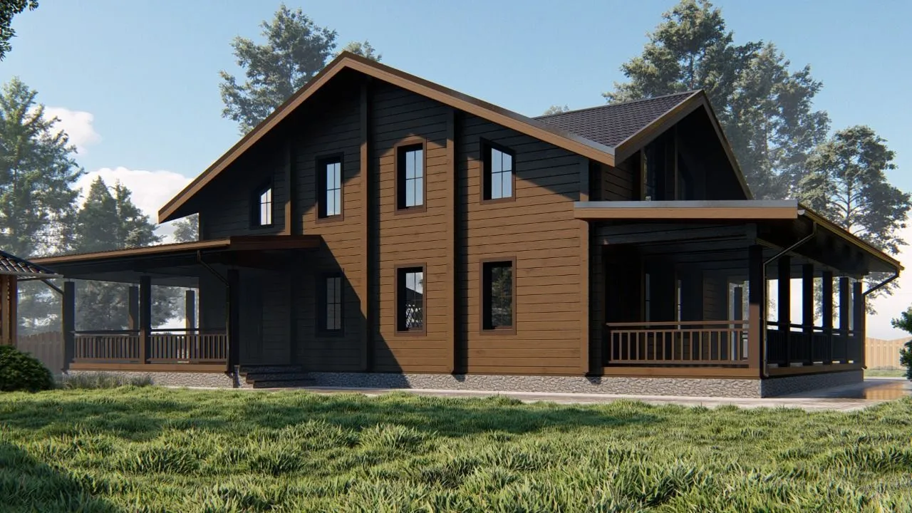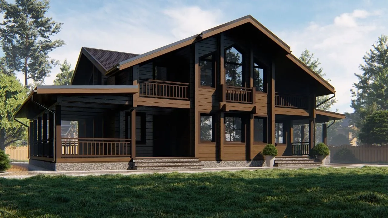 Дом «Горки» — воплощение спокойной, но неповторимой уюта, которое раскрывает гармоничные традиции классической архитектуры в каждой детали. Двухэтажный уют с клееным брусом дарит ощущение теплоты и надёжности от основания до самой крыши. На двускатной крыше мягко скользит летний ветер, а с каждой из пяти балконов открывается панорамный вид на близлежащие живописные холмы и светлое просторное летнее небо. Веранда внизу — идеальное место для вечерних чаепитий или семейных встреч, где каждый миг обретает особую романтичность. Насладитесь комфортом круглогодичного проживания: изолирующие свойства клееного бруса дарят тепло зимой и прохладу летом, а современные утеплительские решения гарантируют экономию энергии и отсутствие лишних шумов. Идеально для тех, кто ищет сочетание практичности и эстетической красоты. Хотя прилегающий гараж отсутствует, вам останется простор, чтобы хранить свои вещи в отдельном сарае или просто наслаждаться открытой территорией. Этот дом обещает стать вашим личным уголком уюта, где каждый день начинается с вдохновения, а заканчивает безмятежностью.