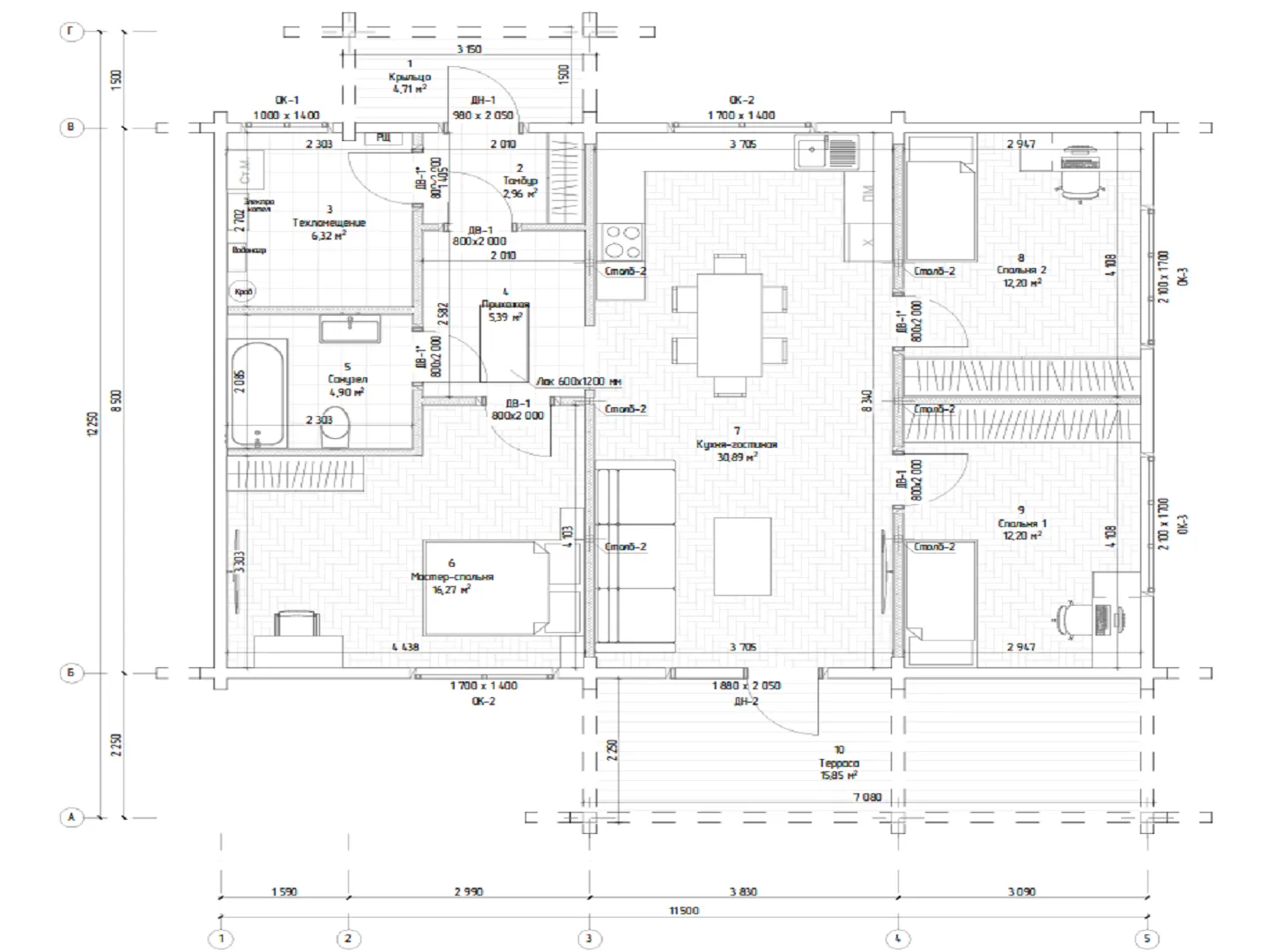 Дом из клееного бруса по проекту БД-112/3