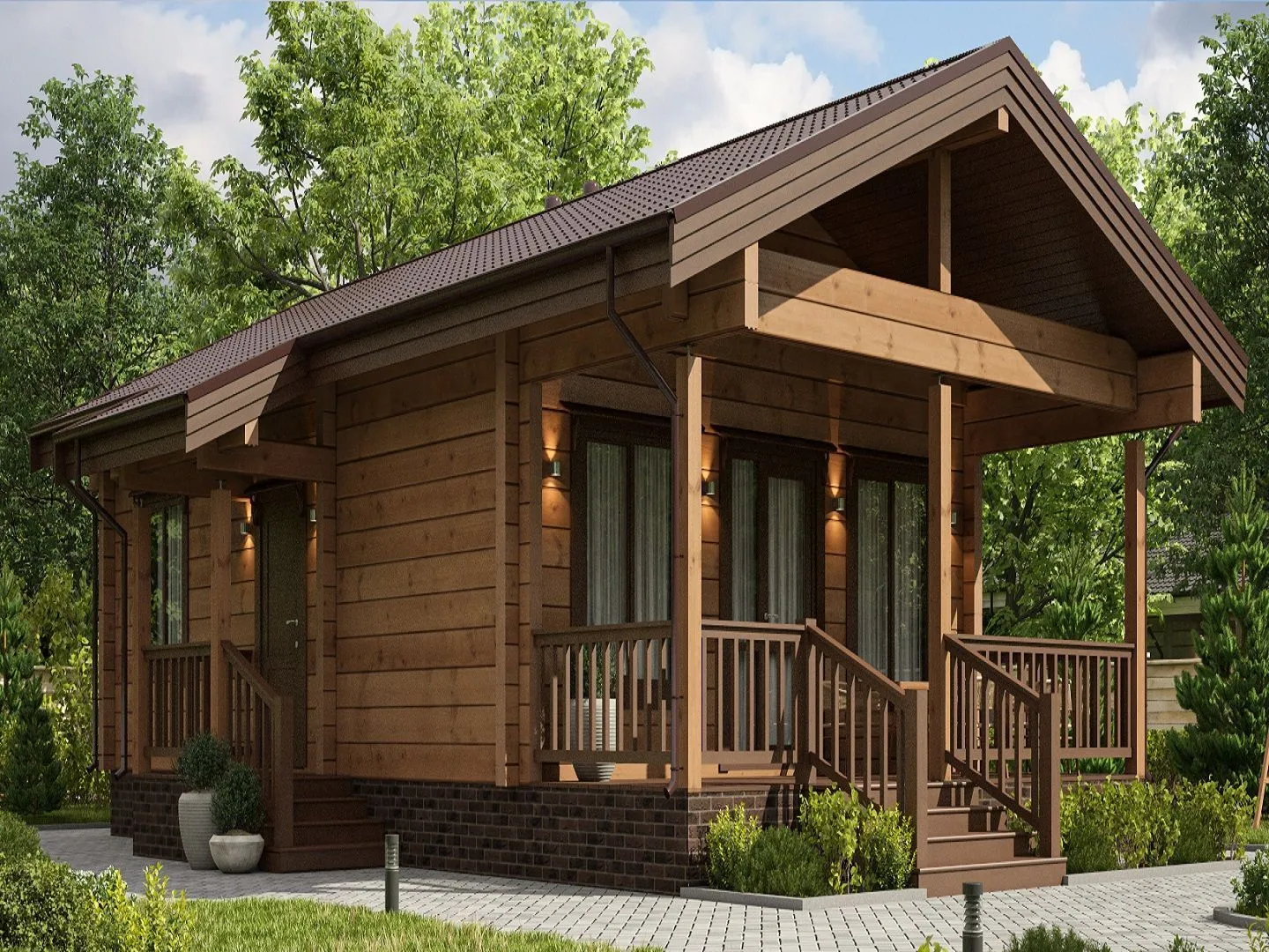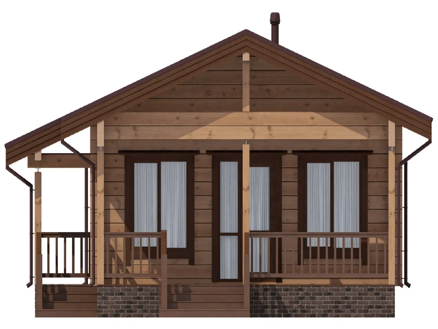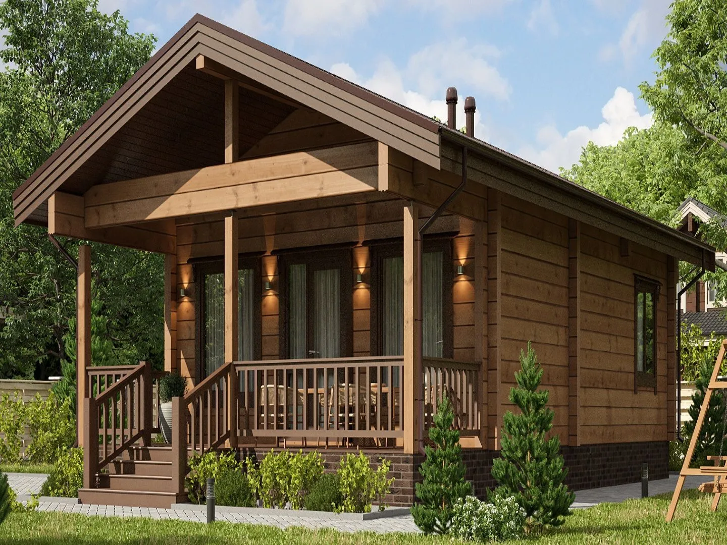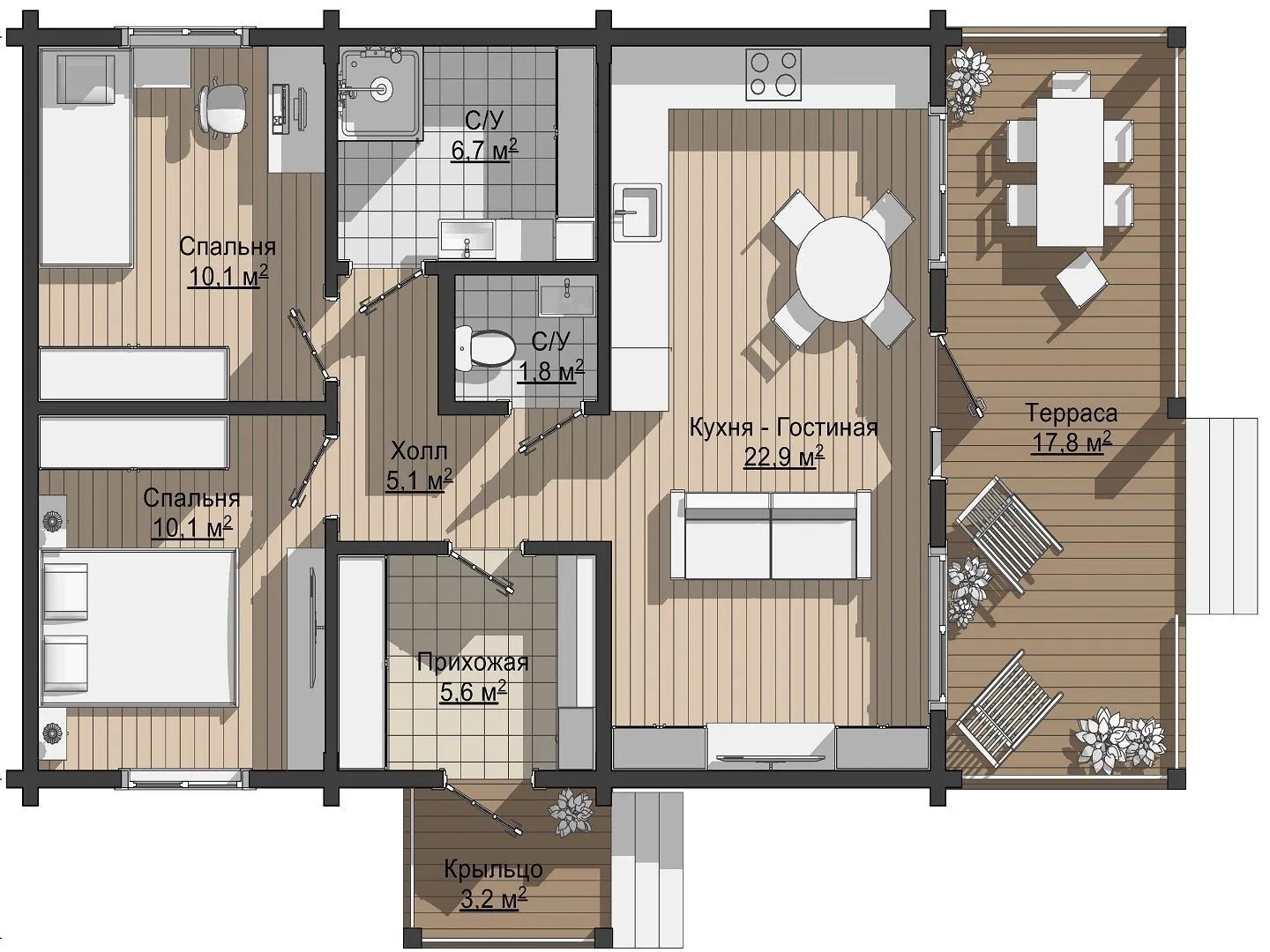 Одноэтажный дом с двумя спальнями и крыльцом