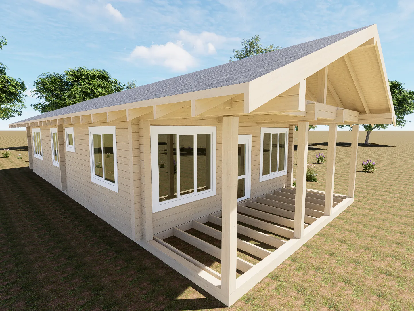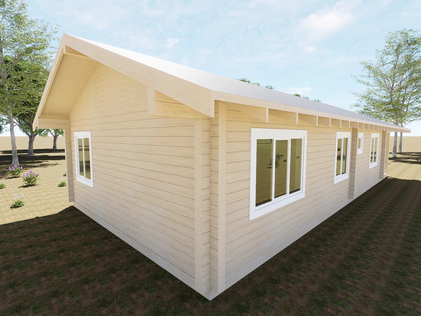 **Приглашаем вас познакомиться с уникальным домом из клееного бруса — проектом БД‑106, воплощённым в реальность в истинном скандинавском стиле.** Это уютное загородное пространство, где каждый элемент был продуман до мелочей: строгая геометрия крыши с двойным склоном, гармоничный цвет бруса, создающий ощущение тепла и природной простоты. На первом (и единственном) этаже находится все необходимое для комфорта: просторное открытое пространство, достаточное для размещения всей мебели, и, конечно же, атмосфера, где чувствуется забота о деталях и любовь к уюту. Дом рассчитан на **всесезонное проживание**: утеплённый клеённый брус гарантирует тепло зимой и прохладу летом, а прочные, долговечные материалы обеспечивают надёжность и минимальный уход. По проекту предусмотрено **чердачное помещение** — идеальное место для хранения, мастерской или домашнего офиса, а открытая **терраса** приглашает к вечерним беседам, просмотру звездного неба и ароматам свежего воздуха. Это место, где комфорт сочетается с практичностью: отсутствие балконов, веранд и прикрытых стоянок только подчёркивает лаконичность и современность дизайна, а ровные линии крыши подчеркивают элегантность архитектуры. Скандинавский стиль в доме БД‑106 проявляется не только в выборе материалов, но и в тонко подобранных цветовых решениях, которые создают светлую, воздушную атмосферу, и в функциональной простоте, благодаря которой каждый сантиметр пространства используется максимально эффективно. Этот дом — идеальное решение для тех, кто ценит тепло, уют и простоту, но при этом хочет жить в современной, экологичной и надёжной архитектуре. Будьте готовы открыть для себя новый уровень комфорта и эстетики, где каждое утро начинается с вдохновляющего вида на природу и мягкого звучания ветра в сводных стенах.