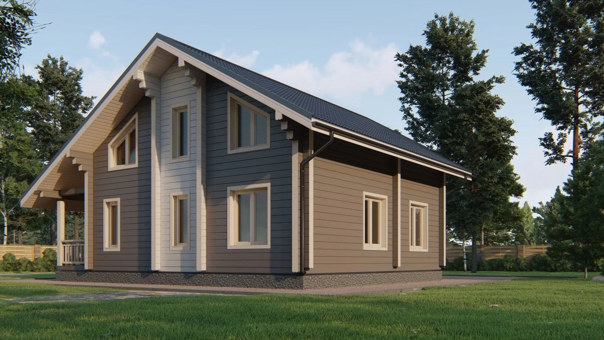Новый дом «Приморск» – это гармоничное сочетание традиций и современных технологий. Из прочного клееного бруса он излучает тепло и уют, а классический архитектурный стиль придаёт ему безмятежную элегантность. Удобная двухэтажная планировка позволяет использовать пространство оптимально: два надземных этажа обеспечивают достаточно места для семьи, а просторные коридоры и открытые планировки создают ощущение простора и свободы. Дом оснащён двумя балконами, которые открывают вид на живописный ландшафт, а уютная веранда становится идеальным уголком для вечерних бесед под звёздами. Двускатная крыша с современными материалами гарантирует надёжность и долговечность, а использование клееного бруса обеспечивает отличную тепло‑ и звукоизоляцию, что делает его пригодным для круглогодичного проживания. Внутри каждый уголок продуман до мелочей: светлые стены, большие окна, качественная отделка – всё, чтобы вы чувствовали себя дома как дома. Без пристроенного гаража и чердачного пространства «Приморск» оставляет простор для вашей креативности: вы можете построить уютный задний уголок с садом, или организовать мастерскую. Этот дом – воплощение комфортного семейного гнезда, где каждая деталь отвечает вашему благосостоянию и стремлению к гармоничной жизни.