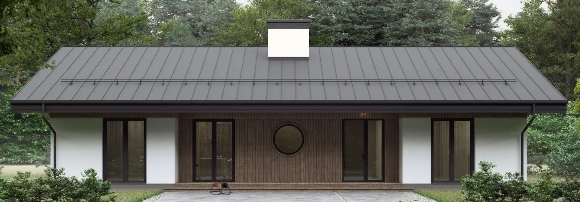 Заказать конусльтацию по:Дом из ж/б панелей с сауной и комбинированным фасадом SP-143-1