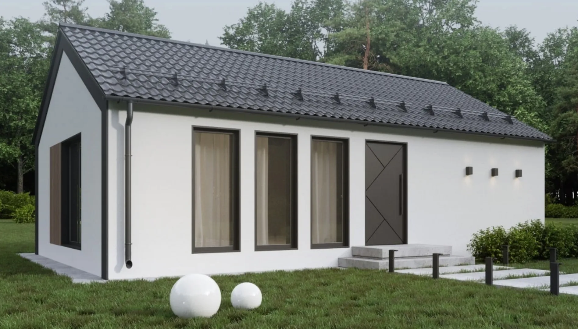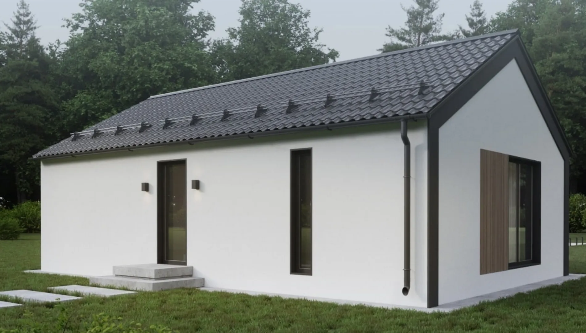 В сердце тихого жилого квартала стоит уютный дом “Милли”, площадью 56 м², выполненный в строгом минималистическом стиле. Простор внутри открывает безмятежную гармонию форм: одна открытая планировка — идеальная точка сближения семьи и природы. Современный архитектурный подход подчёркнут материалами натурального цвета – газобетонными блоками, которые придают фасаду чистую, спокойную элегантность и гарантируют тепло вашего дома круглый год. Гладкая двускатная крыша защищает внутреннее пространство любыми погодными условиями, а отсутствие лишних отделений сохраняет уютное и функциональное пространство, где каждый сантиметр пропитан духом простоты. На балконе, веранде, гараже и чердаке нет, что подчёркивает лаконичность и чистую эстетику. Это ваше новое убежище, где минимализм становится комфортом, а каждый день начинается с ощущением легкости и вдохновения.