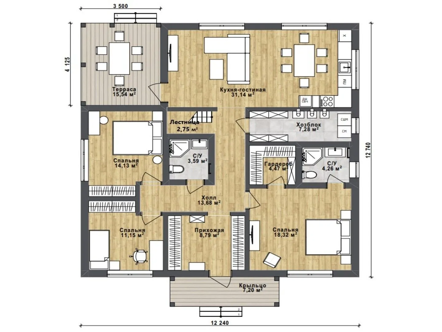 Одноэтажный жилой дом СВ-130 в декоративной штукатурке