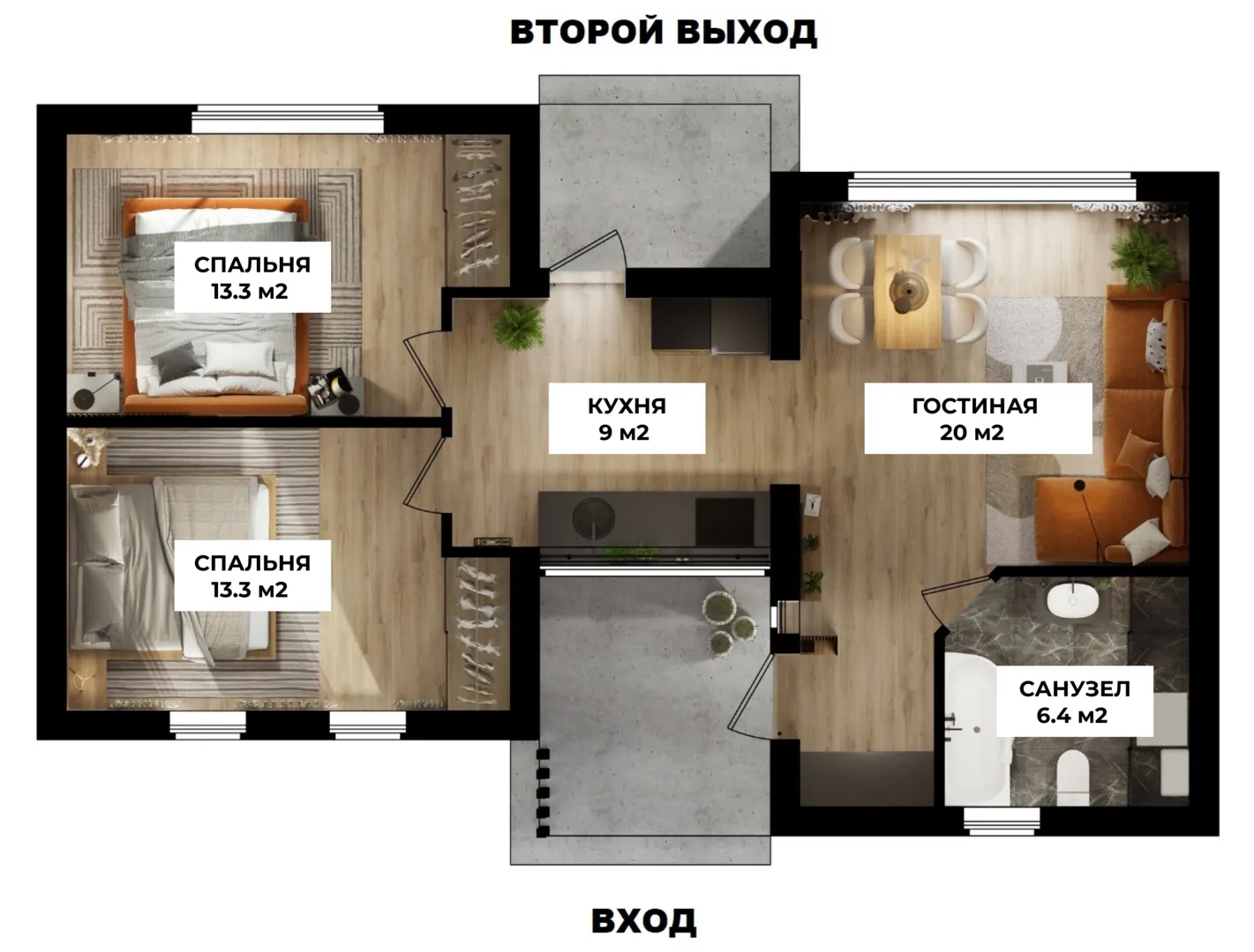 Вдохновляющий минимализм в каждой детали – это ваш новый Дом ПИРИ площадью 62 м². Спроектированный как одноэтажный уют, он создан для круглогодичного проживания: тепло и комфорт в любое время, а светлая обстановка создаёт атмосферу домашнего уюта. Просторные комнаты, продуманные переходы и высокие потолки дают ощущение открытости, даже в ограниченном квадрате. Эстетика чистых линий сочетается с практичностью: стены из газобетонных блоков гарантируют надёжную изоляцию и долговечность, а комбинированная кровля обеспечит защиту от дождя и снега. Внутри царит порядок – от уютной кухонной зоны до комфортного спального помещения, где ваши мысли смогут отдохнуть. Это идеальное решение для современного человека, ценящего качество, простоту и функциональность. Не упустите шанс стать владельцем дома, который воплощает лучшие черты минимализма и обеспечит вам безмятежное пребывание: комфорт, стиль и надёжность – всё, чего нужно вам сегодня.