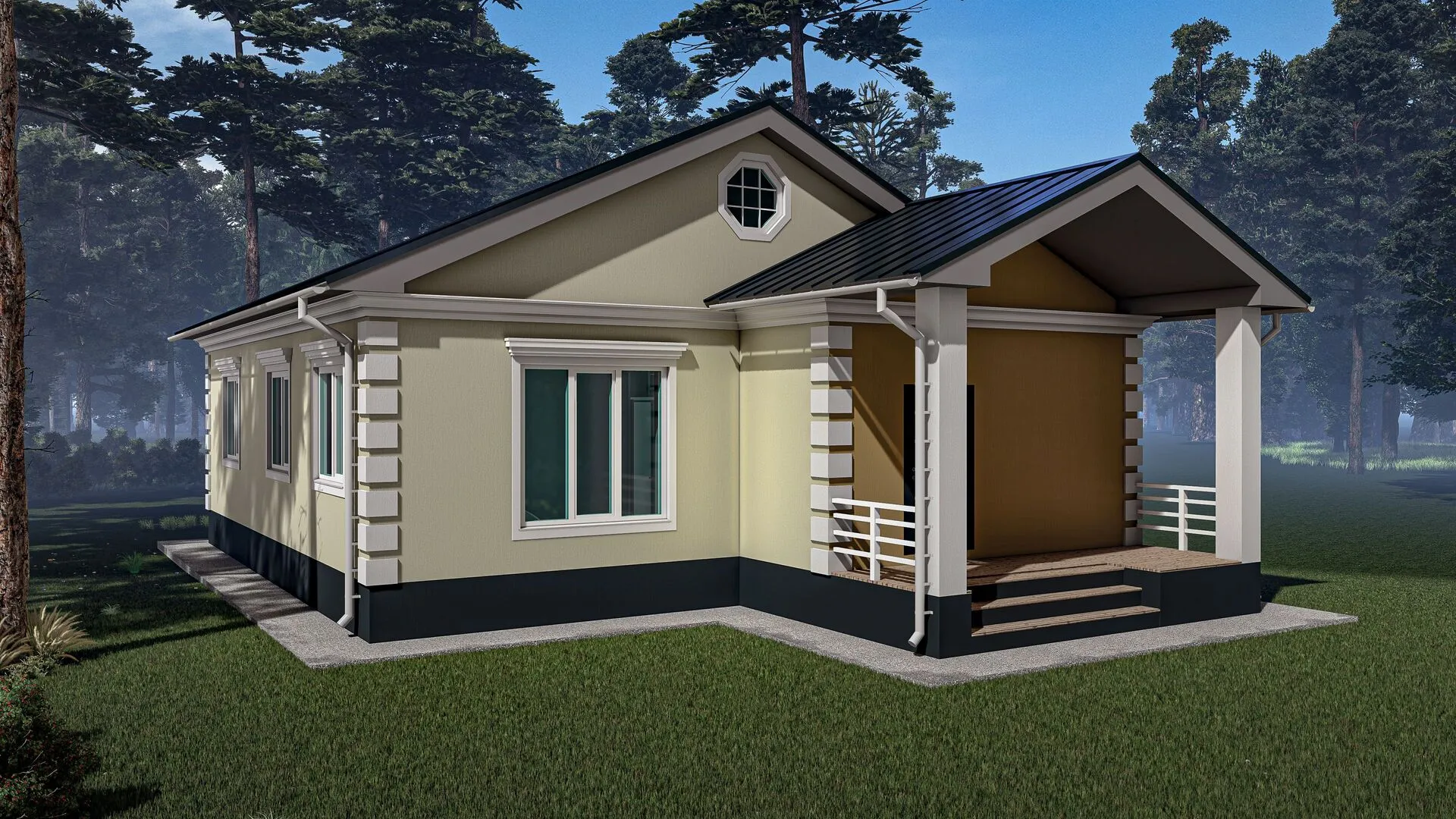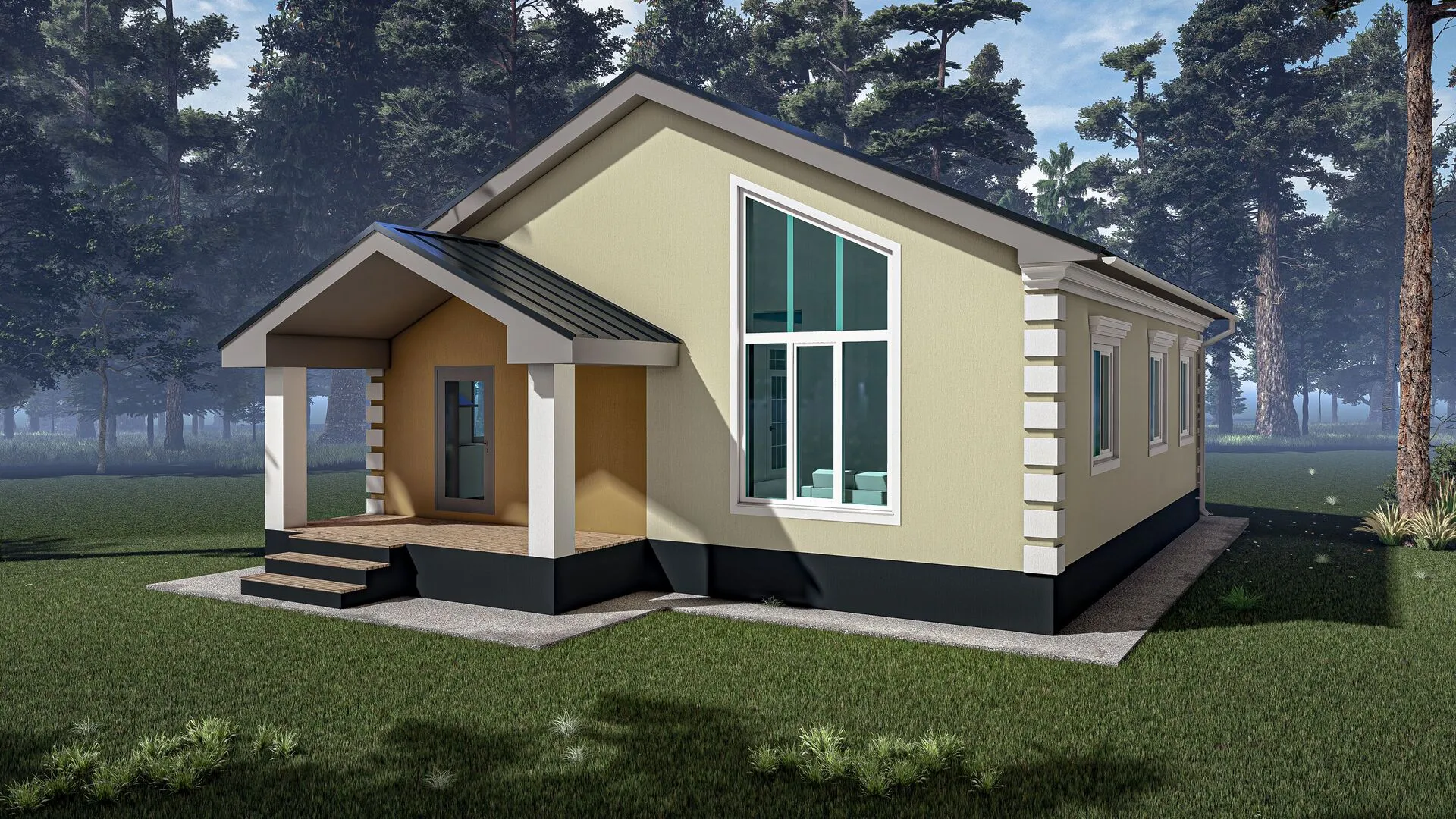 Заказать конусльтацию по:Дом с двухскатной крышей и двумя спальнями