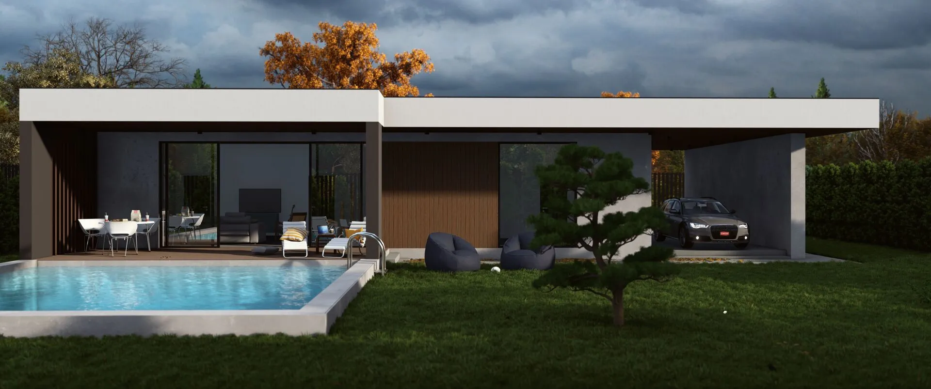 Дом с гаражом в стиле “Line house”
